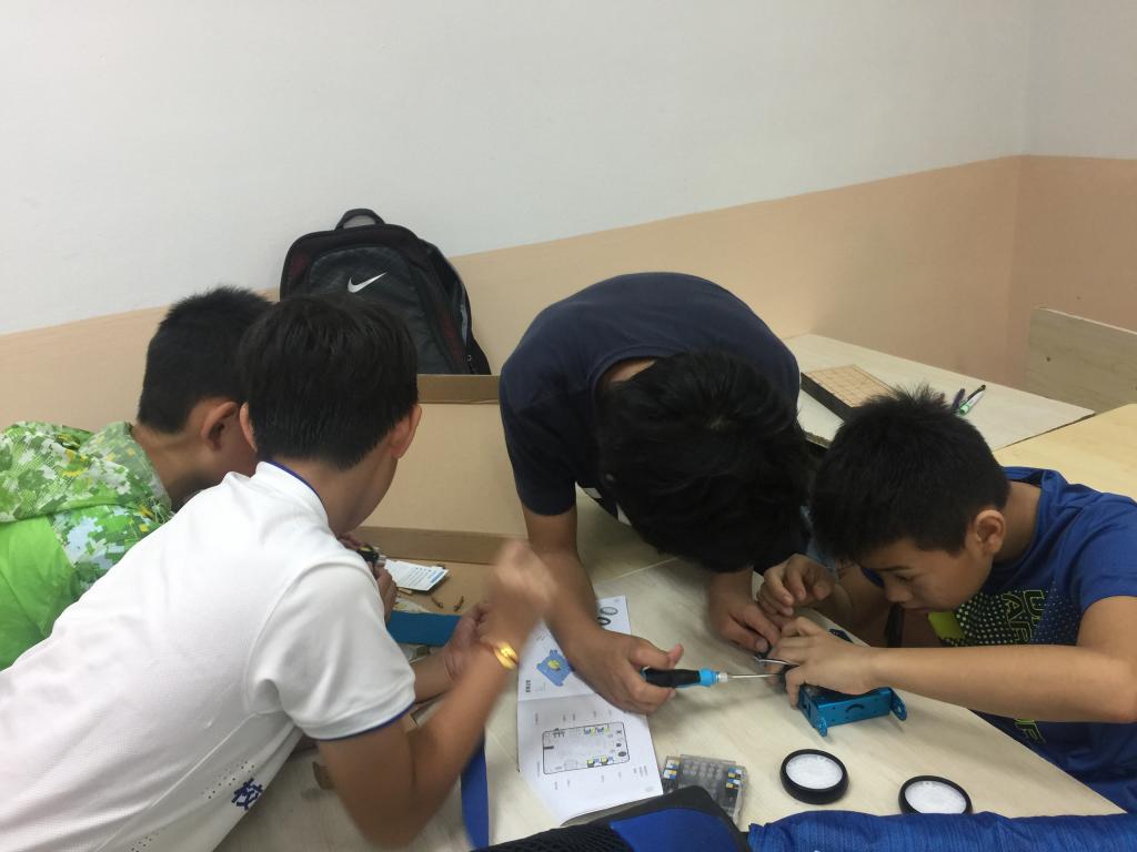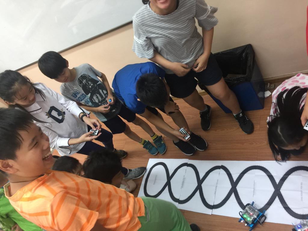 In the Grade 5-6 robotics course, students mastered basic robotic assembly and robotic programming after just one semester. In the classroom, students were divided into groups and conducted a robotics tour. In the tournament, each team had to put their assembled robot on a black track, allowing the robot to travel along the black line. The team with the fastest robot would win. The teams participated in the competition actively and the competition was very lively.