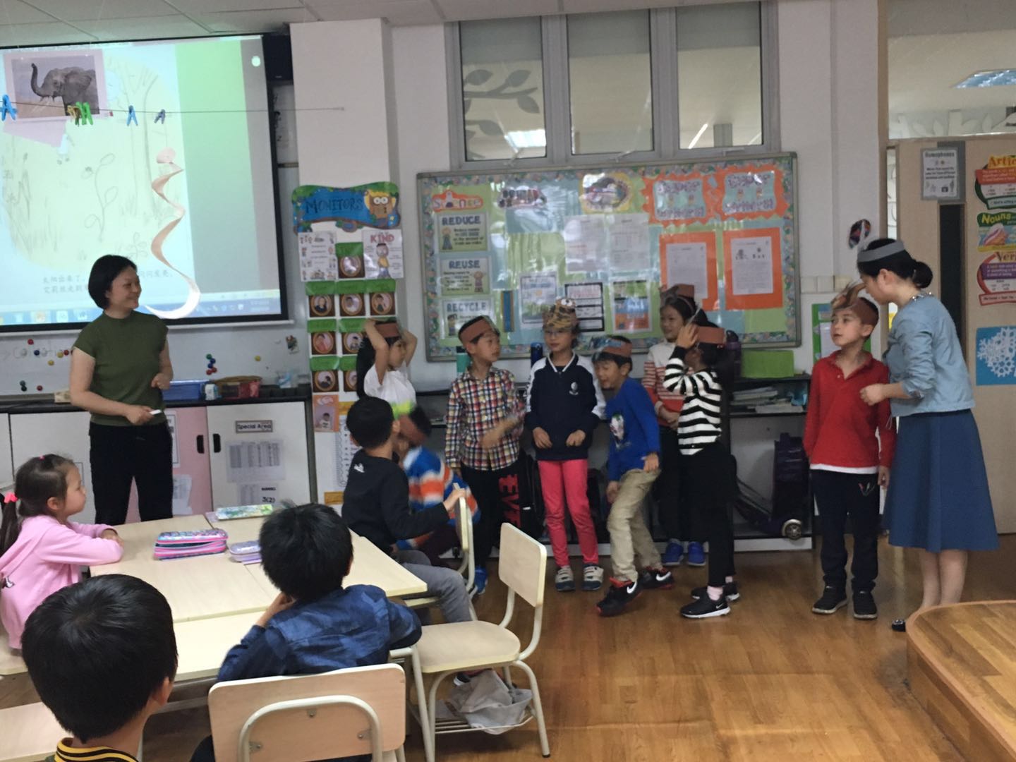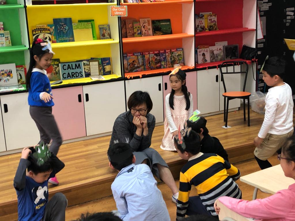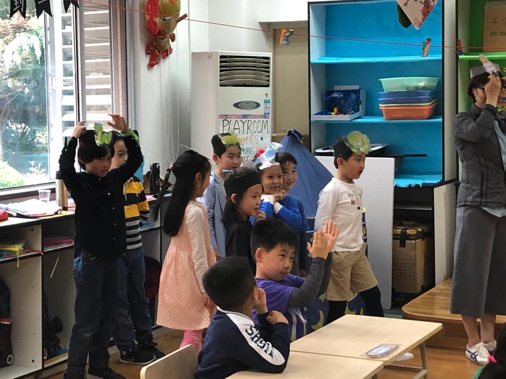 Two days after Mother’s Day on May 14th, our beloved story moms delivered a special story to grade one students at SHSID Pudong Campus. During personal growth class, the story moms brought a story for the students to act out rather to than listen to. It was a story about a girl who tried to befriend animals in a field. The animals all hid themselves from her until she stopped approaching them. Students played the roles of different animals in the field and interacted with the story mom. While our story moms were reading the story, students spontaneously acted out the whole story. Students loved this game. At the end of the lesson, they presented their own cards for Mother’s Day for their beloved story mom. What a loving class!