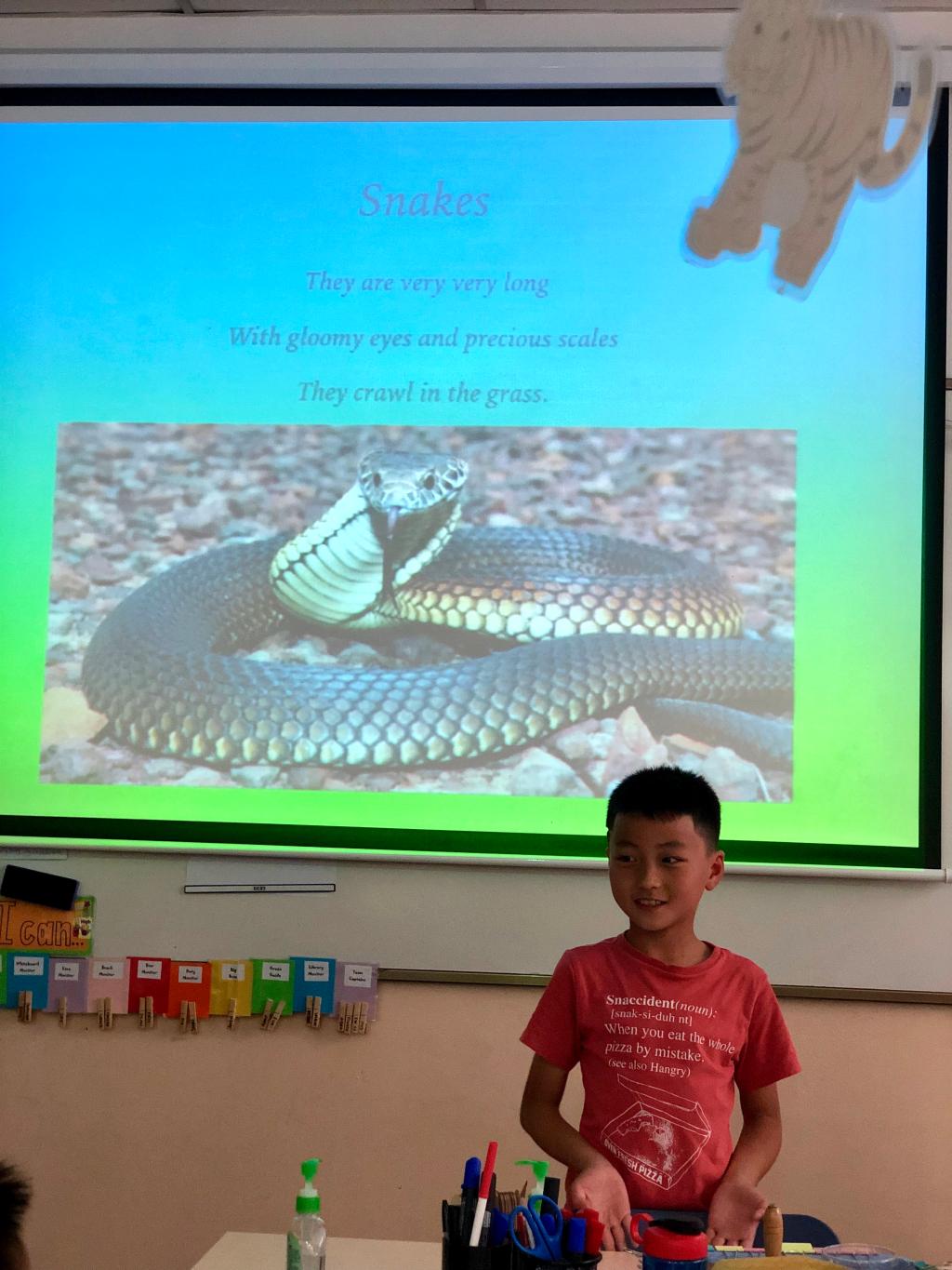 This year, third grade participated in a new and exciting event in the SHSID primary school! Every student took part in a schoolwide poetry slam. Our competition focused on the traditional Japanese poetry form, Haiku. In class, students learned the structure and purpose of these simple, yet limitless poems. In addition to learning the makeup of a Haiku, we focused on fluency and pronunciation.