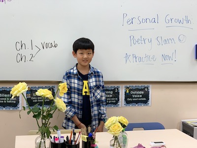 During weeks 13-15 students participated in a “Poetry Slam” competition. They were given a list of poems from their homeroom teacher and had to select their favorite one. Students memorized the poem and recited it during personal growth class. Students used expression and body language while reciting their poem. It was fantastic seeing classmates encourage each other after each poem. Then, a winner was selected to represent each class in the official “Poetry Slam.”