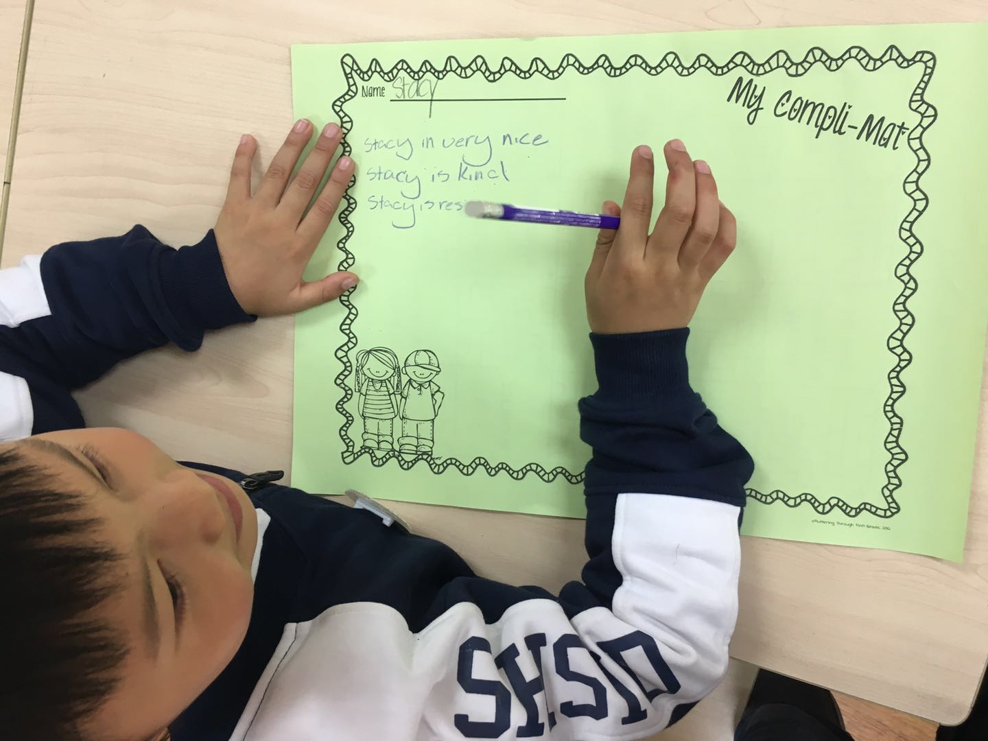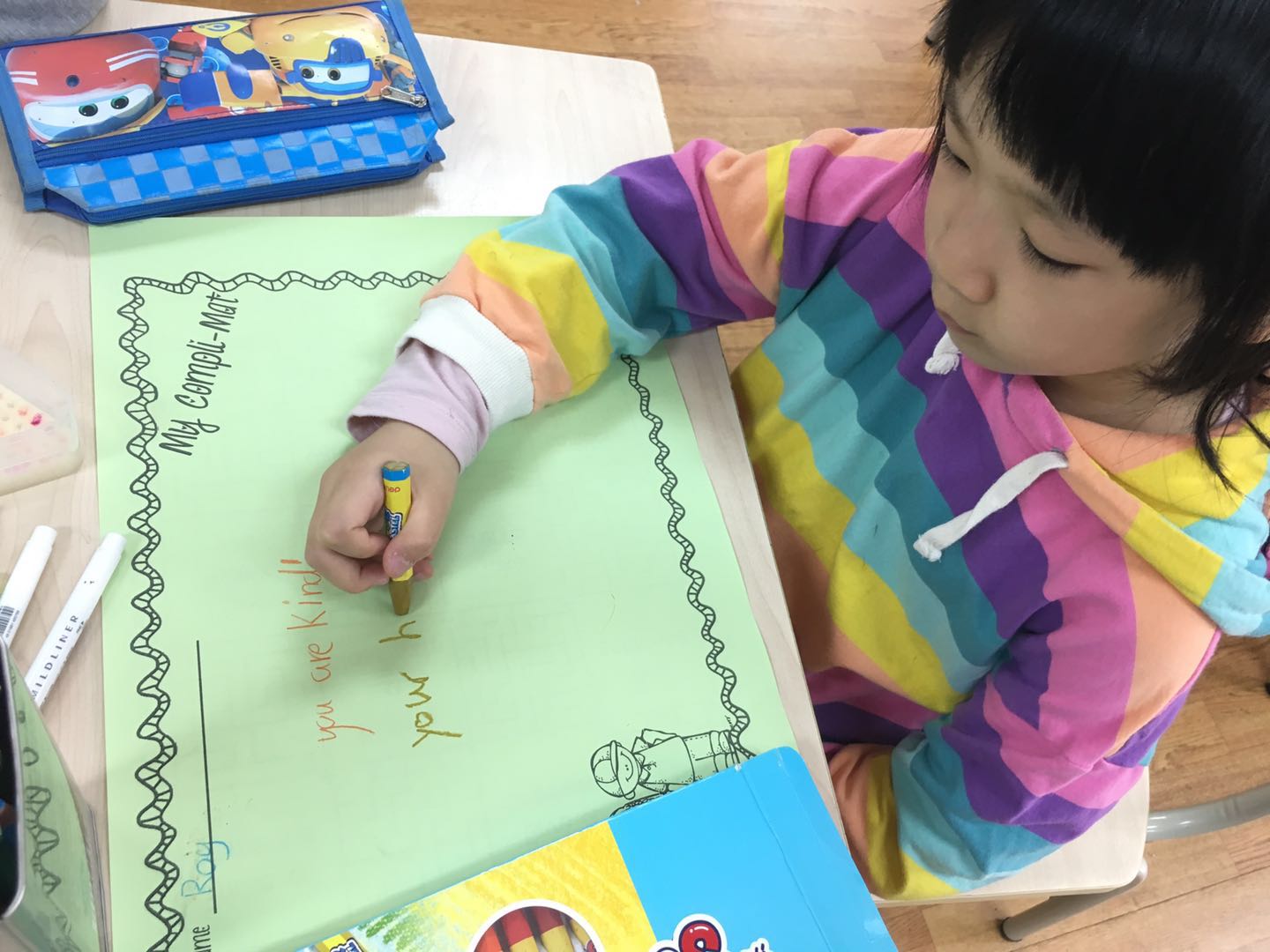 Students should always treat their friends and those around them with care and love. On May 6th, grade one students at SHSID Pudong campus had a short lesson featuring the “Complimat”. The Complimat is a mat sized paper where students can write complimentary words for their classmates. Before they actually did this, the teachers prepared a short lesson on how compliments could change a person and make their day. Compliment vocabulary was also provided for the students to choose from. Students then took a gallery walk to write beautiful sentences for others while nice music filled the room. After this short lesson, we hope the students will contribute to a better class atmosphere and develop optimistic personalities.