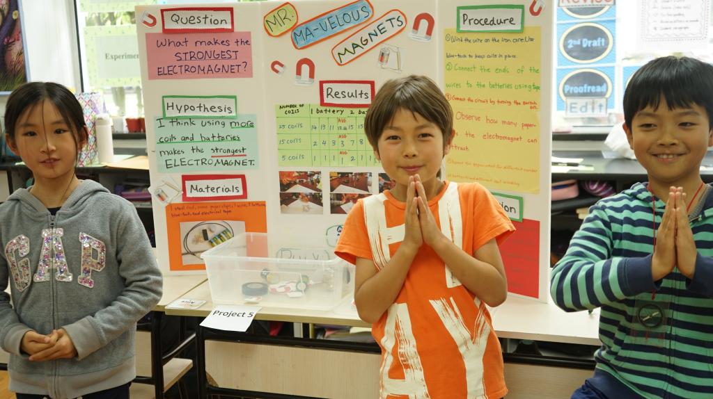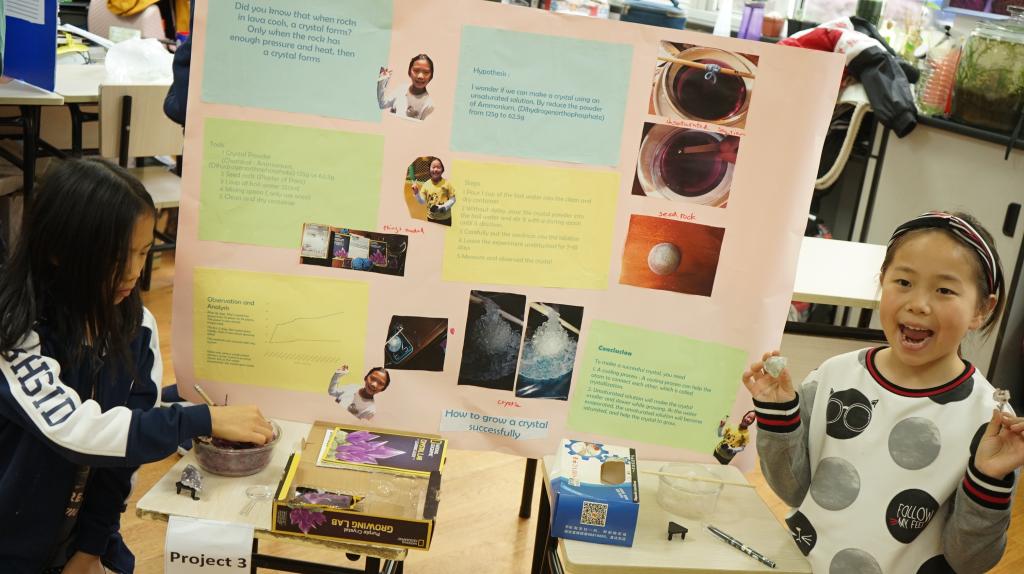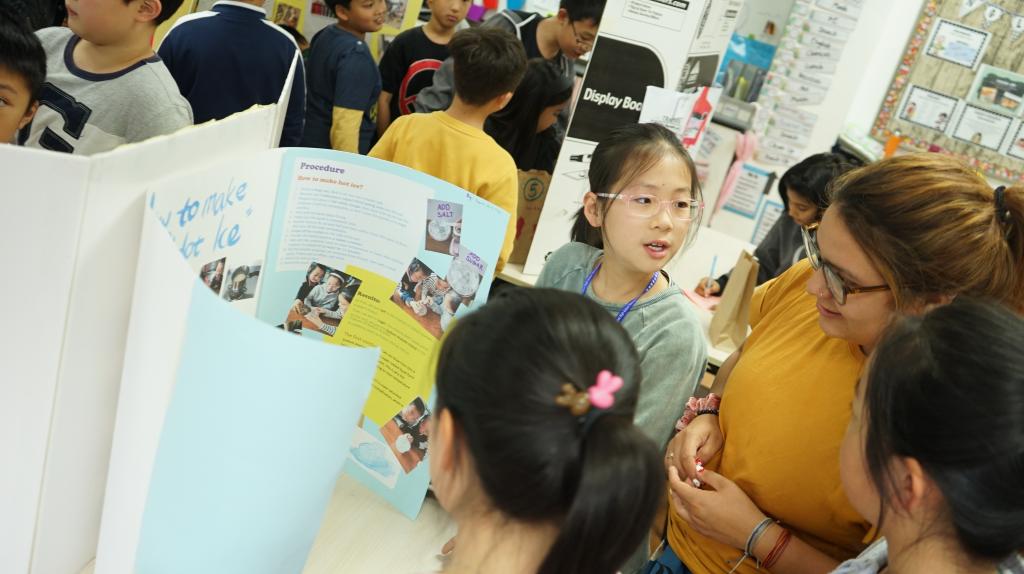 The annual Pudong Campus Science Fair was held on May 7th. The third graders were so excited to take part in this fun event! The students chose their topics by observing questions in real life. Then, they prepared for their experiments. After designing their experiments, they worked on their projects and recorded every step. Last, but not least, they made conclusions and reflected on their experiments. Students explored which kind of liquids can make plants grow better, made volcano experiments with coke, and showed why we need to wash our hands by displaying petri dishes of germs. During the fair, all the 3rd graders introduced their “research stories” to the judges with passion and shared their experiences with their peers. The Science Fair does not just motivate the students to explore more in science world, but also develops their teamwork and presentation skills.