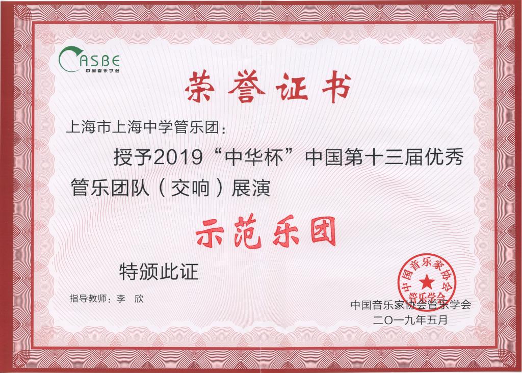 The SHS Wind Ensemble is composed of students from the local and international departments of Shanghai high school. In the 13th China High-class Amateur Band Festival during "May Day", the SHS Wind Ensemble won the honor of "Demonstration Orchestra": the highest possible award. Shanghai High School also won the "Outstanding Contribution Award for Chinese wind music development".