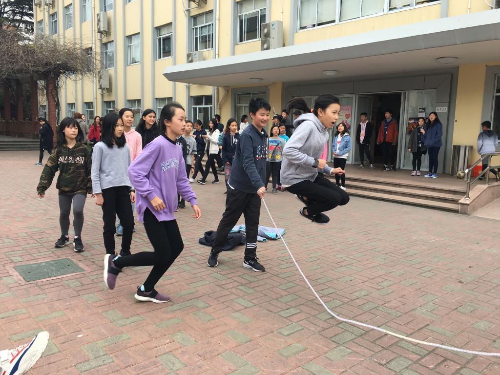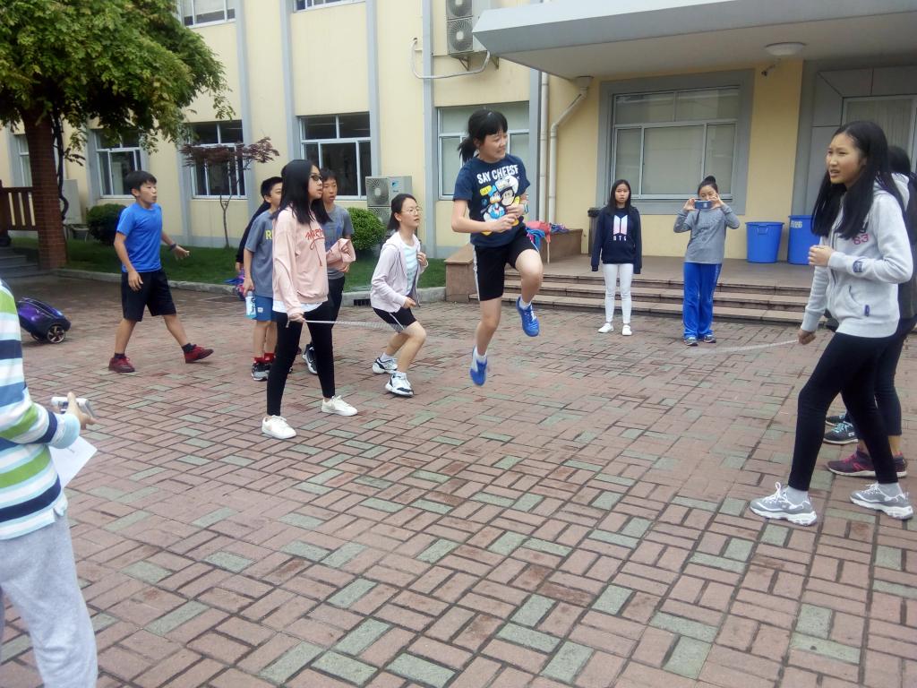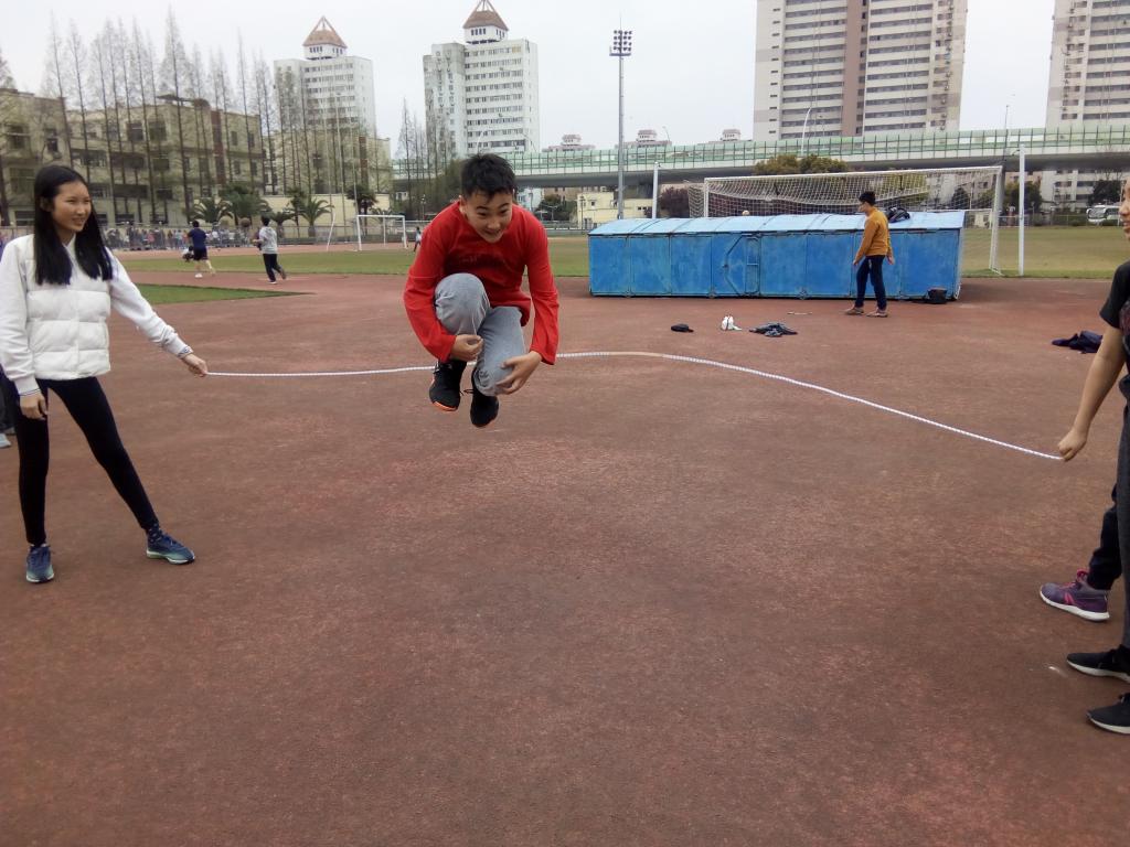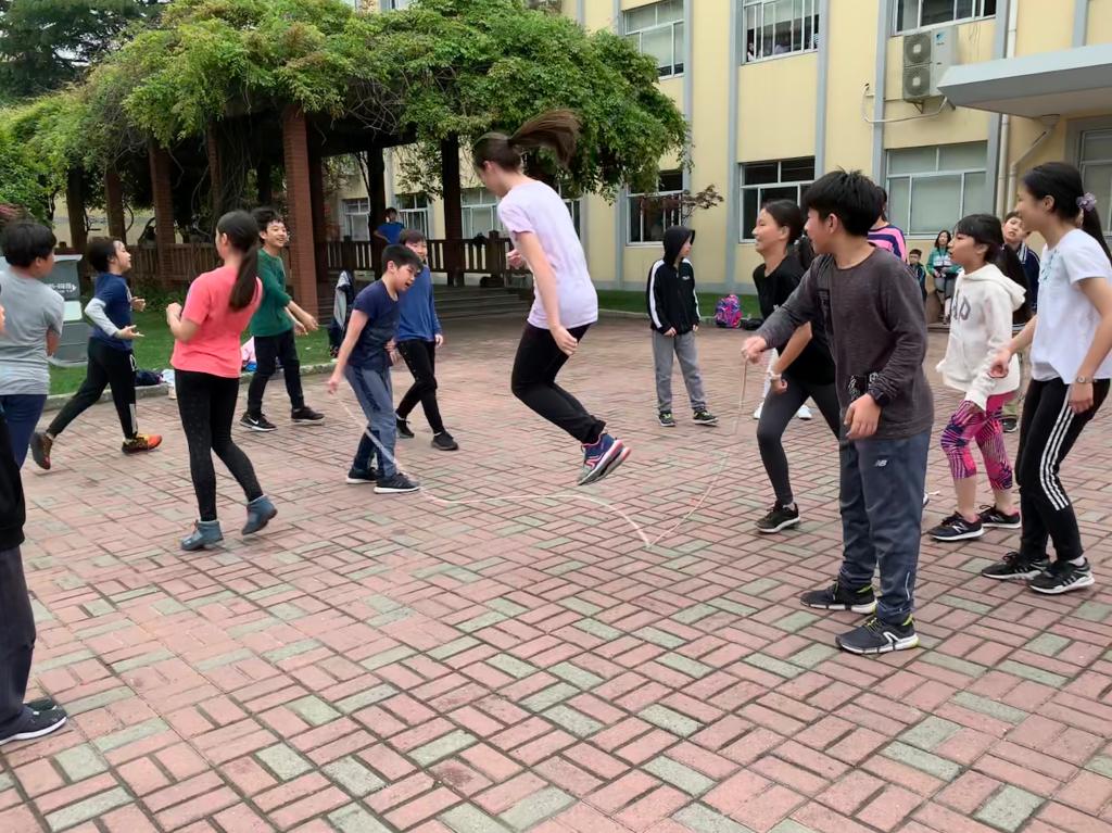 Moments before the competition, students crowded outside of the Art Building. Everyone appeared to be full of energy and confidence and were ready to compete. Ms. Shirley counted down from three to announce the start. Students jumped, one after another, just like dolphins swimming in the waves. When jump-ropers fell, their classmates maintained their grit and did not complain. They encouraged each other to hold their spirit and focus on jumping. The homeroom teachers cheered for their students and were so proud of their class. Although sweat was building on both the jump-ropers and rope-swingers, students kept trying their best to jump the fastest until the end. The number of jumps made between classes were really close and until the last minute, nobody was able to tell which class would be the champion. Finally, Class 6(5), with 283 jumps in three minutes, won.