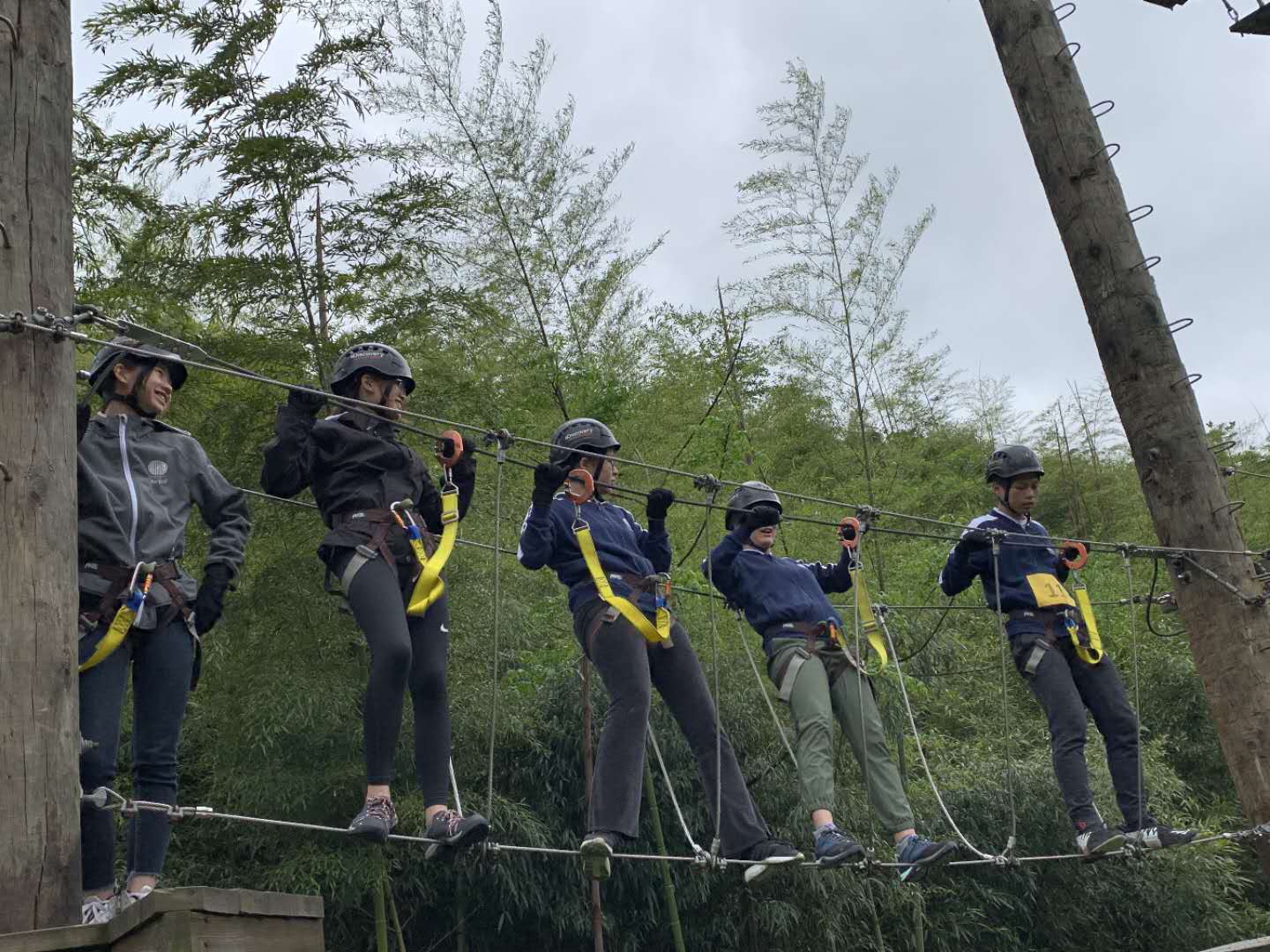 The challenge program took place at the discovery adventure base. From rock climbing to walking on wires at Crystal Valley, the challenge program proved to be worthy of the name “challenge” for a portion of the students. Looming with trees and wires, Crystal Valley was a highly praised destination. Each participant was equipped with a harness, a helmet, and a pair of gloves. While being guided through the process, the students stepped foot upon the wire, and walked as carefully as they could across the valley. Some students have a fear of heights and moved at a slow pace to ease their fear. One student in particular, Michael, mentally prepared for half an hour before climbing upon the metal wire. His classmates patiently stood aside, expecting him to give up. However, their expectations took a one-eighty as he took step after step, completing the task. Michael claimed that his fear was great, but the thought of giving up never crossed his mind. Although his nerves were through the roof and both his mind and body were tired, he wished to conquer more of his fears through more similar events.