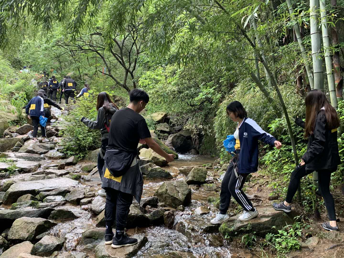 The 8 km hike took place at Mogan Mountain. The mountain roads are sometimes steep, sometimes flat, and often have streams and steps crossing in between. The morning rain also added difficulties to this adventure. Although it was a tough journey, the students managed to exhibit their spirit of cooperation as they lent hands and hiking sticks to each other, ensuring their safety.