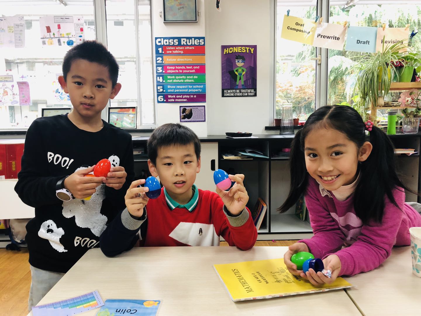 Secretly, the bunnies planted delicious treats all around the classroom for the students to find. Where the bunnies disappeared to, no one knows! Grade two students were delighted to find out that they had an exciting search on their hands. They each found several treats hidden inside the colorful eggs planted by the bunnies. Smiles filled the classroom as they spent time enjoying their candies.