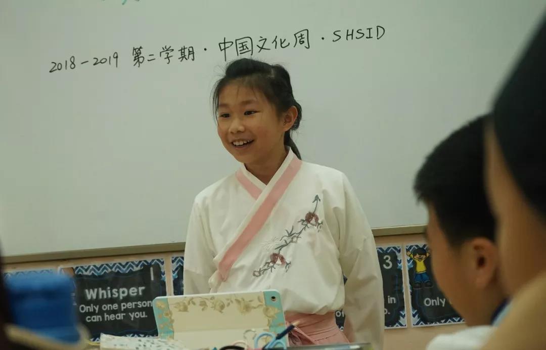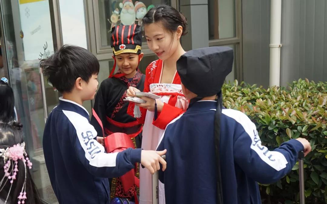 April 26 marked the last day of Chinese Culture Week in the primary section. The students and teachers wore various kinds of traditional Chinese clothes to celebrate. Early in the morning, the teachers who greeted the children at the entrance took bookmarks that had poems written on them. If the children could pick up the corresponding lines, they would get a bookmark as a souvenir of Chinese Culture Week.