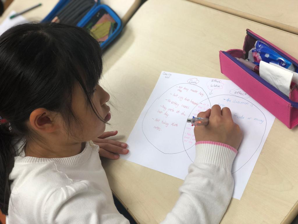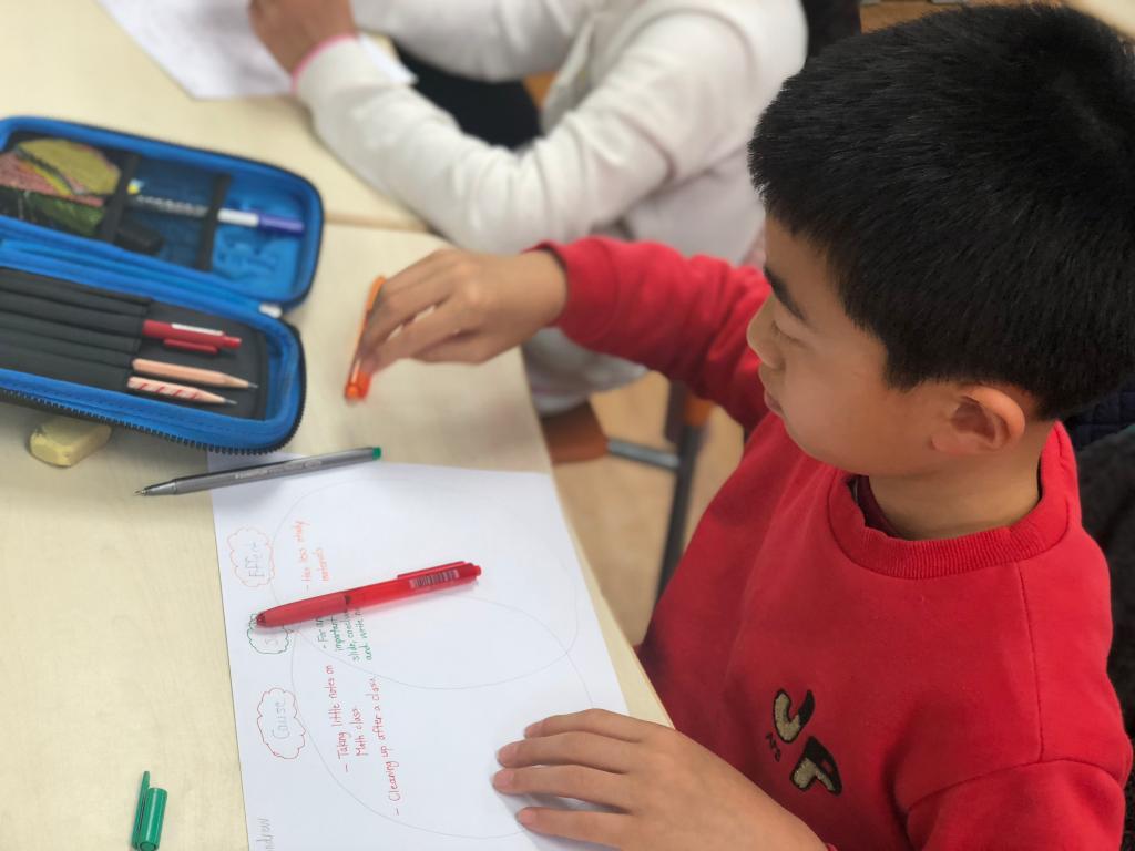 During the CAS class on April 11th, the 4th graders at Pudong campus completed a meaningful introspection practice. With the guidance of their homeroom teachers, the kids discussed the problems they recently experienced, such as not copying homework completely into their contact book. They also talked about the effect of the problem, and some possible solutions. The solutions needed to be “effort solutions” that require personal effort rather than asking others for help or relying too much on tools, which was emphasized by the teachers. After that came the activities! By drawing a pie chart, the 4th graders depicted their problems, their cause and effect, and the effort solutions they came up with. What a meaningful class!