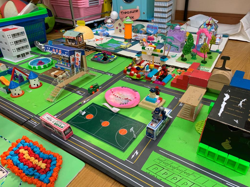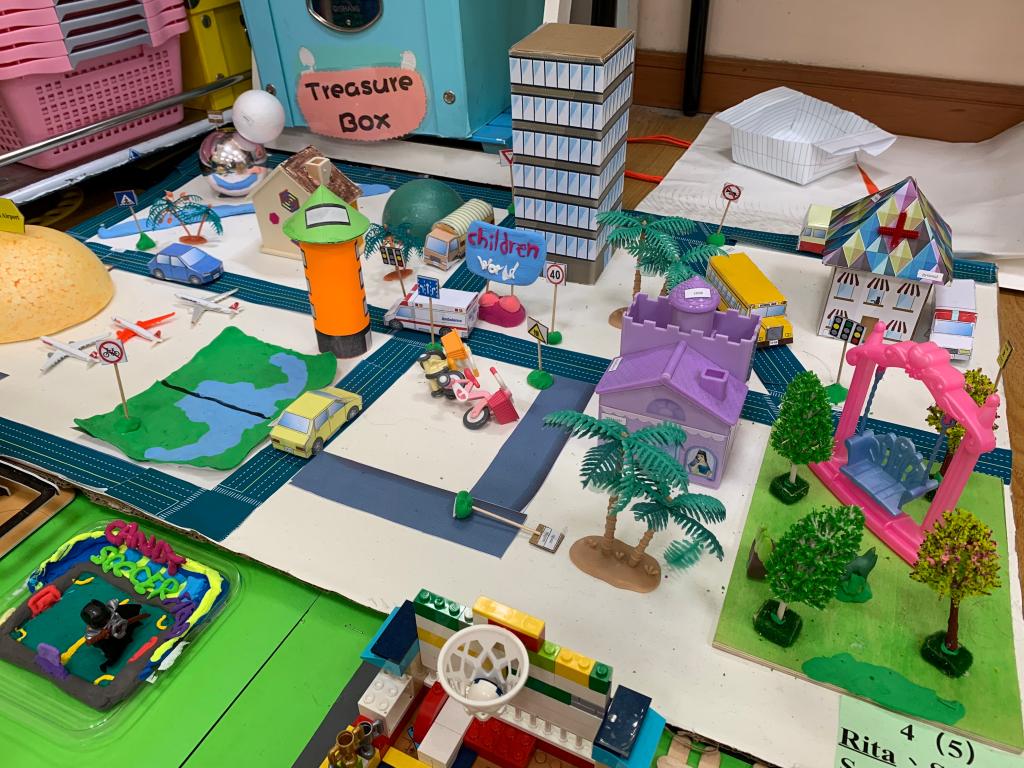 Recently, the fourth graders learned geometric terms in class. Their work culminated in a 3D math project called Geometry City. The students worked in groups as companies to create a city of geometric shapes, angles, and lines. They needed to follow the construction specifications, which included parallel, perpendicular, and intersecting lines, as well as 2D shapes like the trapezoid and rhombus. They also included 3D shapes like the cylinder, pyramid, cone, and sphere in their city. A tessellation was also included in each city near a body of water that had a line of symmetry. The students came up with various creative names and themes for their cities.