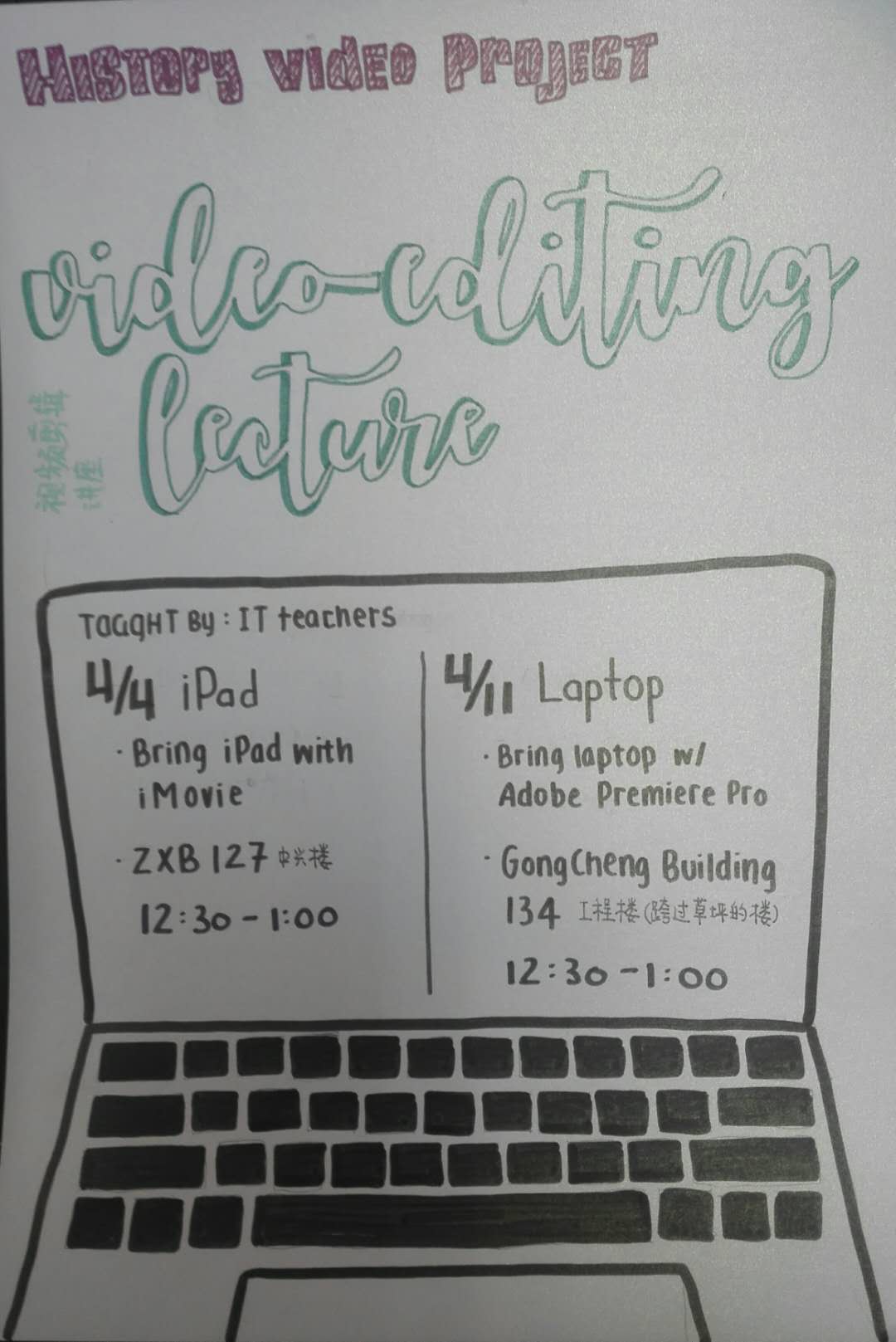 In order to help the 9th and 10th graders make more hi-tech documentary films as well as films for their semester project, the High School History Department invited an IT teacher to give 2 video editing lectures to them on April 4th and 11th. The students now better understand the various functions of video making software after asking questions and following the demonstrations of the teacher. The lectures prepared the students well for their project.