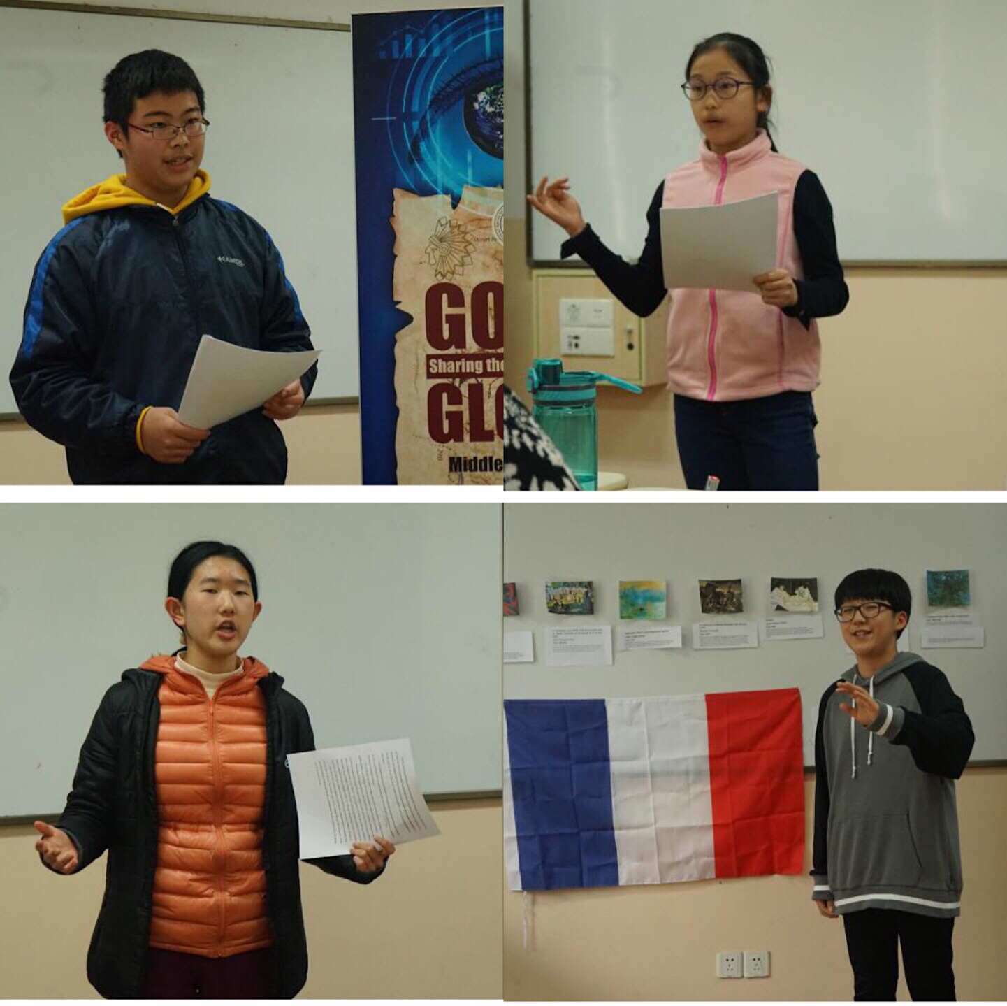During the afternoons of April 1st and April 2nd, eight 7th graders presented their history and culture speeches in front of both teachers and students. The cultural bazaar event was different from other events as it featured the visual arts, food, and clothing of cultures from different countries. In their history speeches, the eight speakers each talked about problems their countries are facing right now, and how to find solutions for those issues.