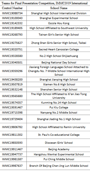 Congrats! IMMC 2019 Greater China International Round Finalist