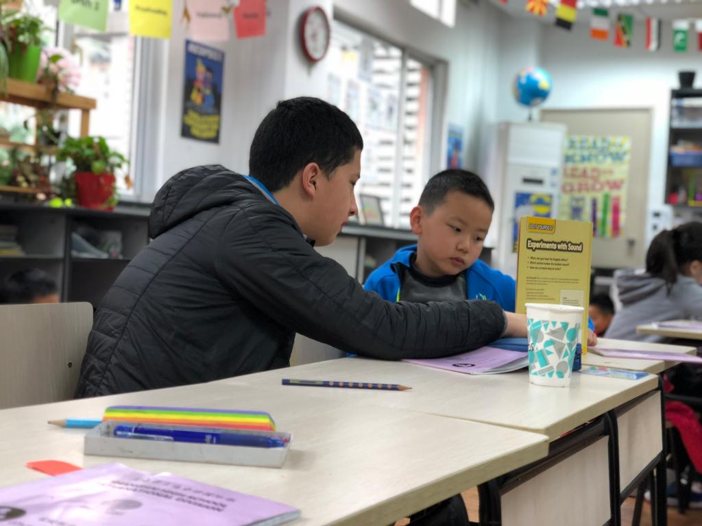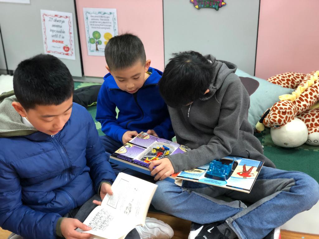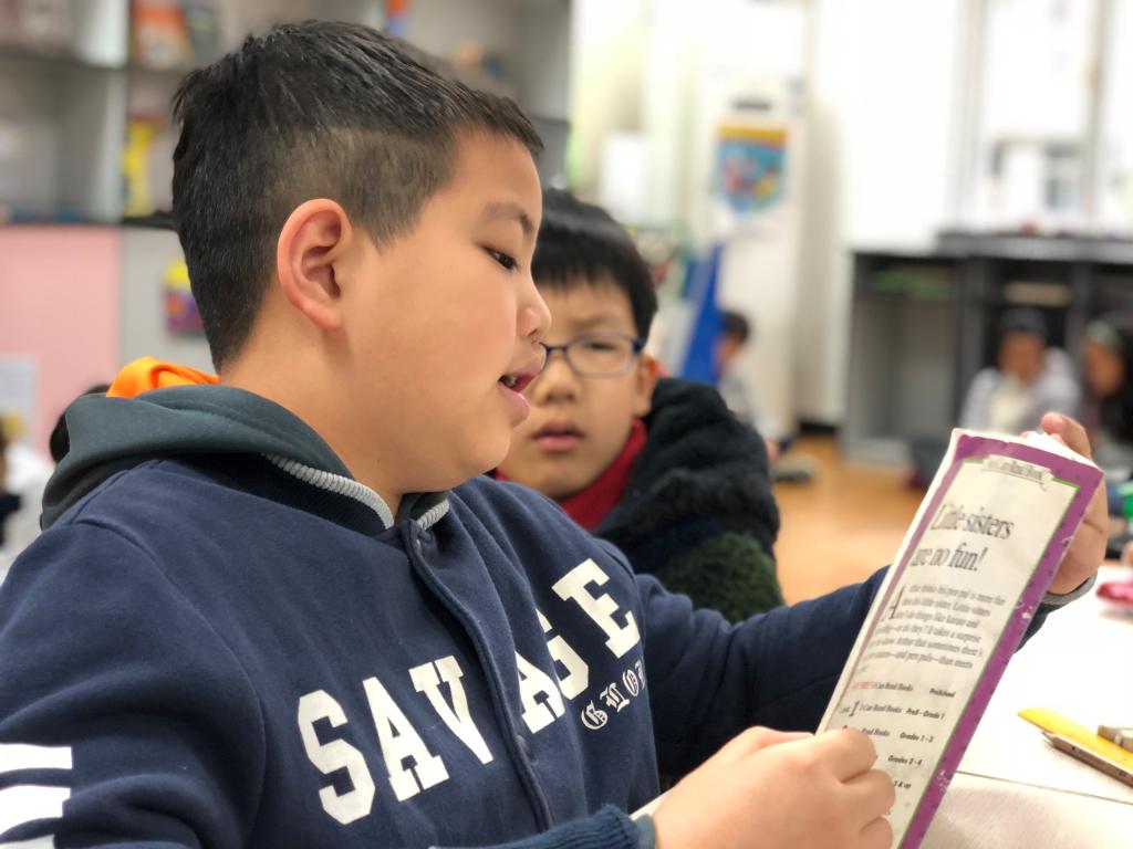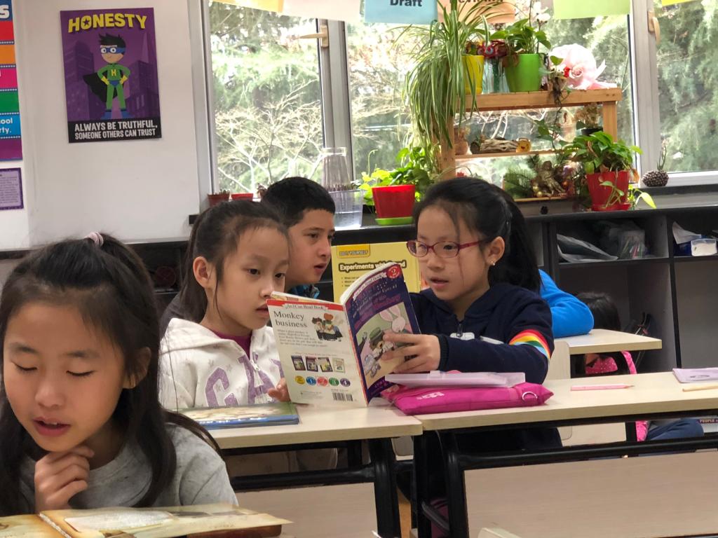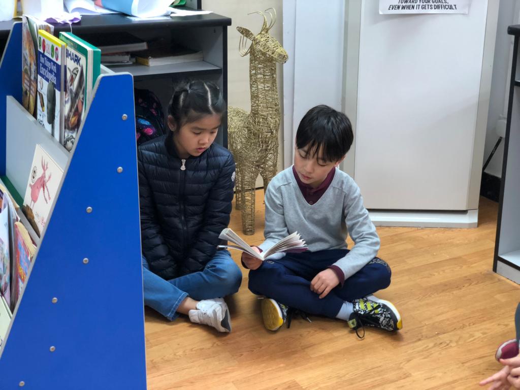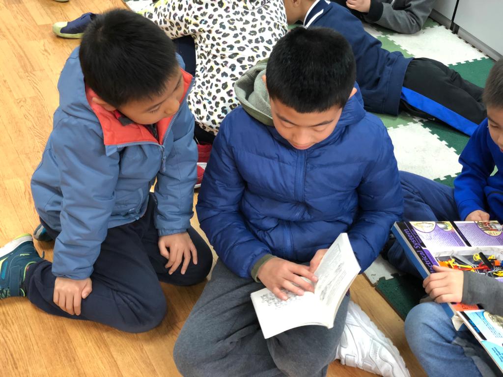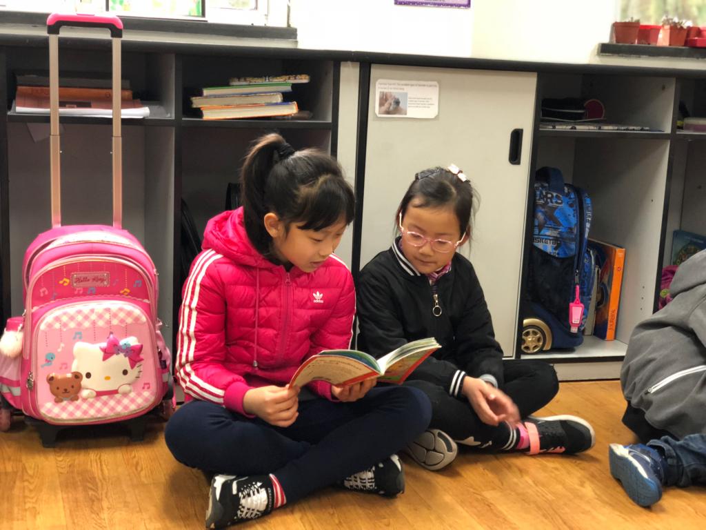 On March 27th, the 4th graders at SHSID had partner reading with students from the lower graders. After brief introductions and chats, the reading buddies started to read a book together. They took turns reading aloud. The kids from the lower grades enjoyed the reading quite a bit and learned a lot of new vocab words; the 4th graders also found it fun and interesting to help others while learning.