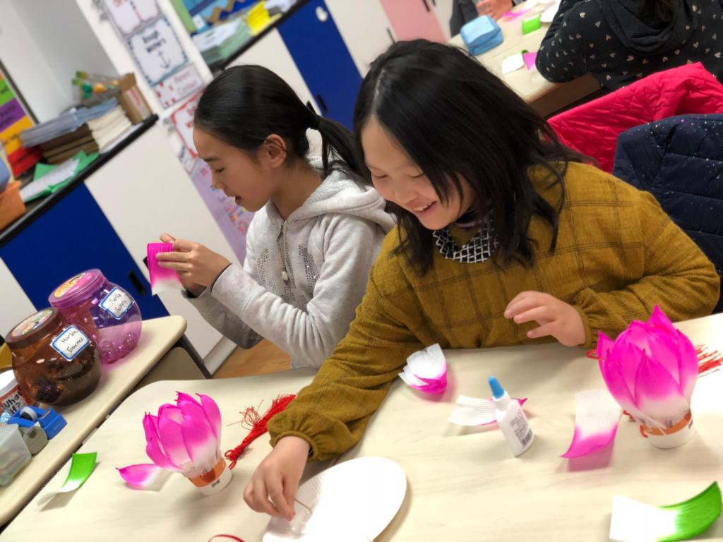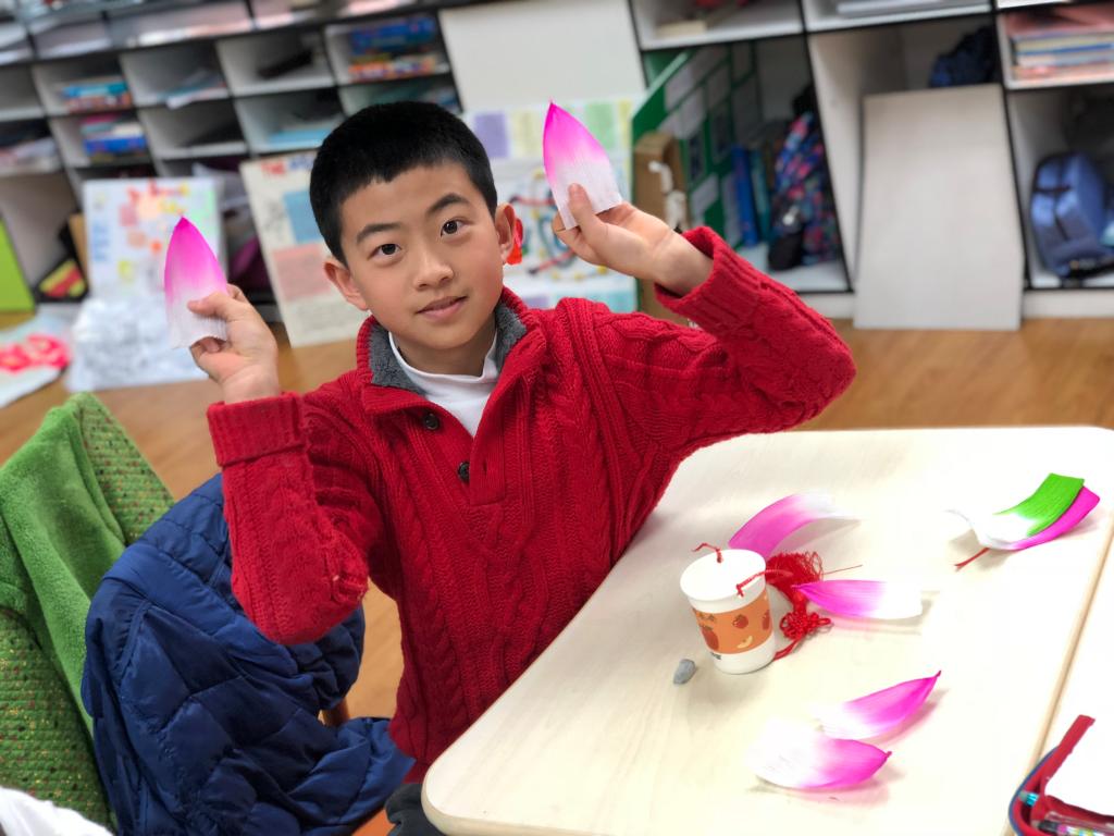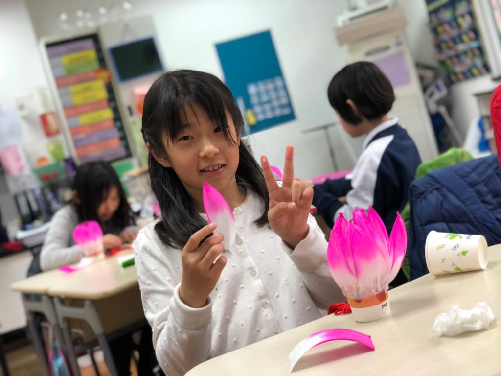 During the CAS class on March 28th, the 4th graders of SHSID Pudong campus made elegant and meaningful Lotus Lanterns with the help of their teachers. In their recent Geography classes, the grade 4 students have been learning about East Asian culture. After learning the fact that the lotus is not only the national flower of India and Vietnam, but also the symbol of Hinduism and Buddhism, the students couldn’t wait to make lotus lanterns with their teachers. With guidance from the homeroom teachers of grade 4, the kids made their lanterns step by step and helped each other with the difficult parts. Finally, they displayed their “art work” with satisfaction. Not only did the students have great fun during the activity, but also reviewed what they learned in Geography class. What a meaningful day!