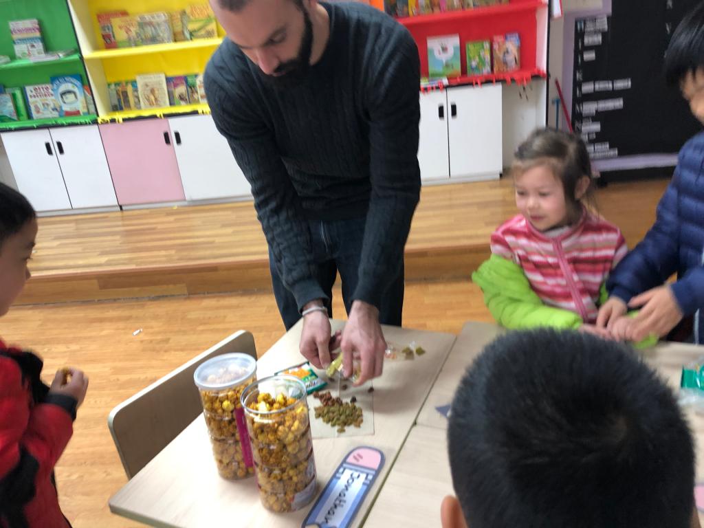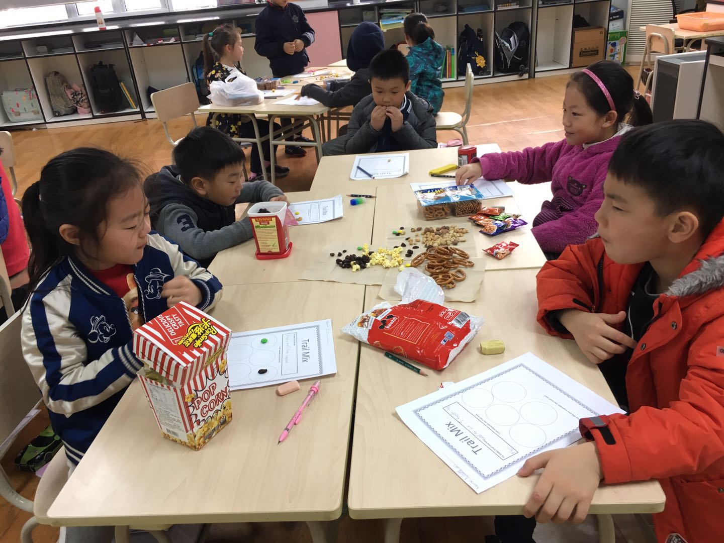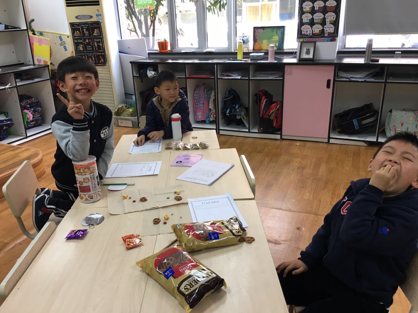 On March 26th, grade one students at SHSID Pudong Campus brought their favorite nuts to the classroom and made their own trail mix. In the science class on Tuesday, students shared the various nuts they brought within their group in order to have an authentic view on how different solids could be mixed together. This interesting experiment was designed to enhance students’ understanding on physical or chemical changes. From this little experiment, students had a better understanding of what physical changes are, as well as the differences between physical changes and chemical changes.