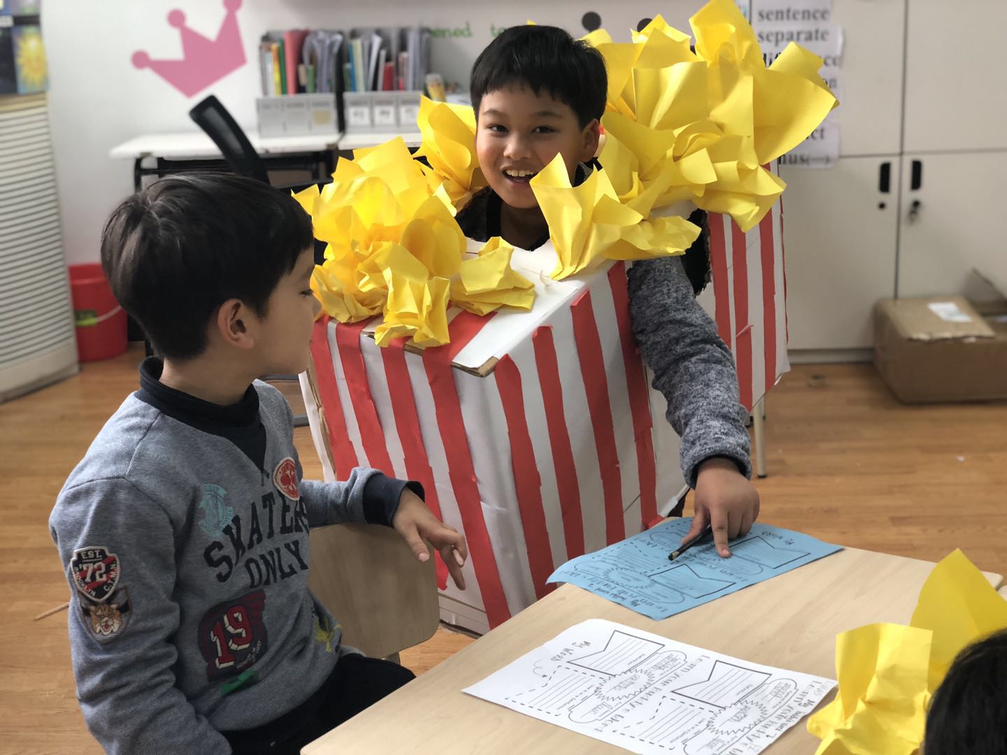 The 5th week of this semester was “Celebrate Reading Week”. All the third graders of Pudong campus celebrated from March 18th to 22nd by participating in different fun activities. Monday was Crazy Hair/Hat Day. The students wore creative hats and fun wigs. Tuesday was the Word Parade, so students dressed up as their favorite word and went on a vocabulary scavenger hunt. Then on Wacky Socks Day, the students wore wacky socks to celebrate the book “Fox in Socks”. On Thursday, they dressed up as characters from the books they’ve read to celebrate Favorite Character Day. Last but not least, Friday was Pajama Day, so the students wore the comfy pajamas and brought their favorite stuffed animals to school. During this week, the students learned that reading is a truly fun thing to do!