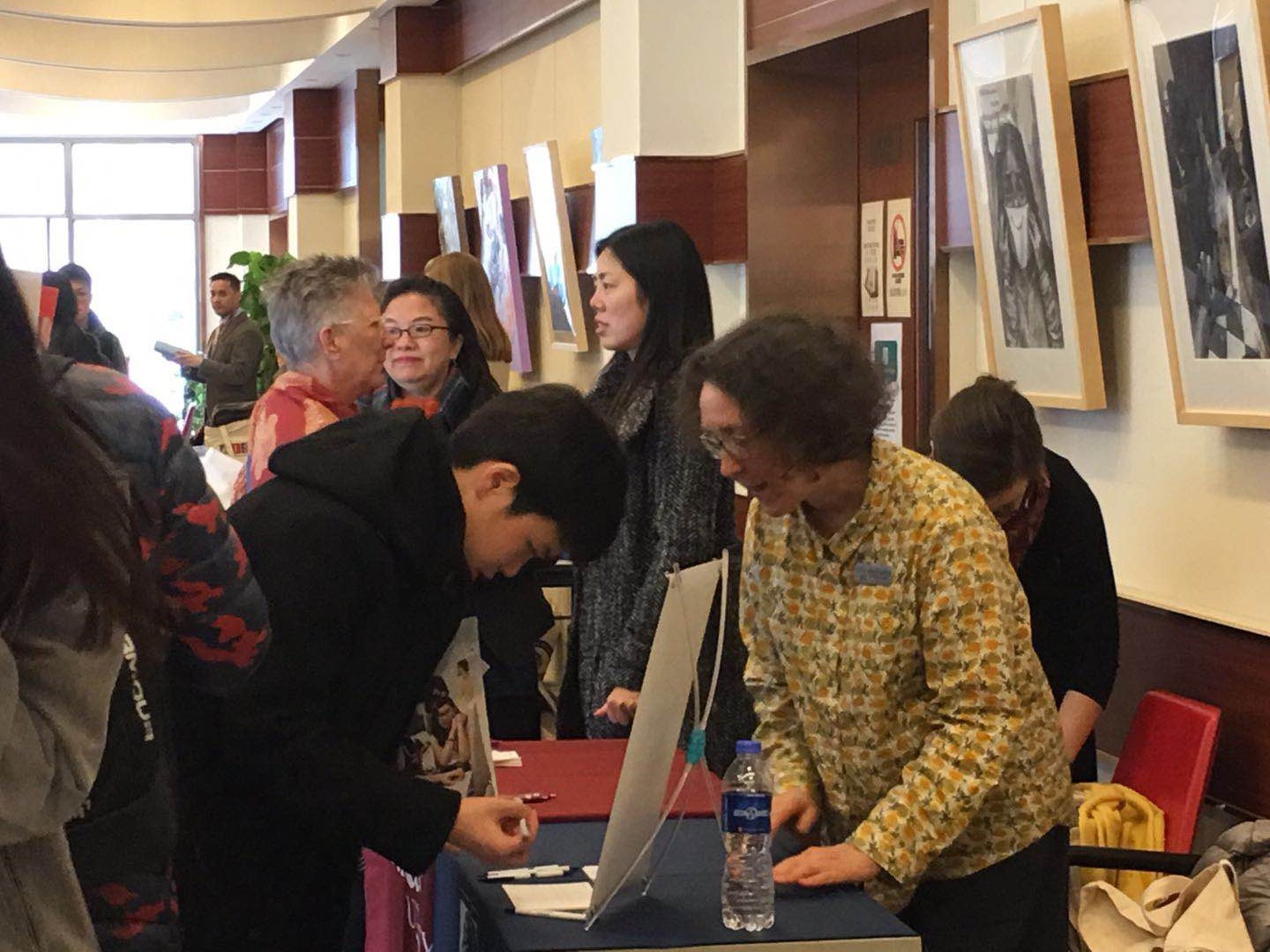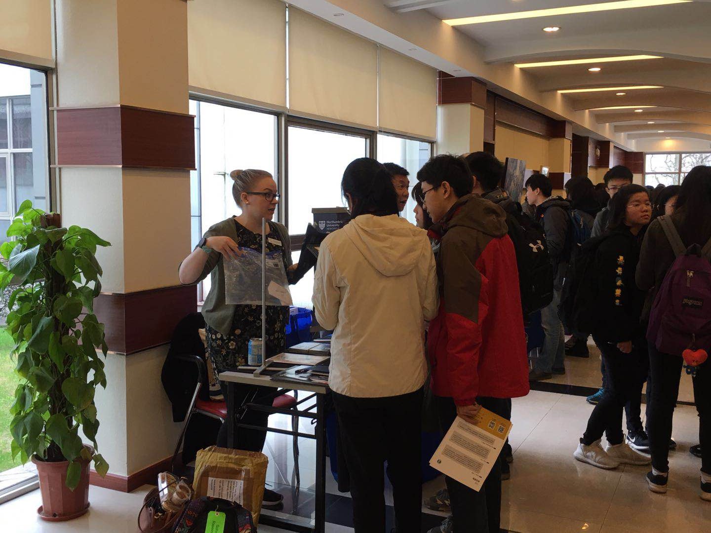 Lectures were given in the Xianmian Annex Building. Ms. Zeng, one of the teacher advisors, provided many tips for choosing the right college for each student. She also listed many useful websites that will help the students evaluate and understand the campus they are considering much more completely. After the lecture finished, the students all had a better idea of how to construct a college list for their future. As the second part started, the students rushed eagerly to the Xianmian Annex Building to attend the college fair. The venue was bustling with students walking around the tables and having insightful conversations with the college representatives. The students selected the schools they were most interested in and meditated on their best questions to impress the colleges.