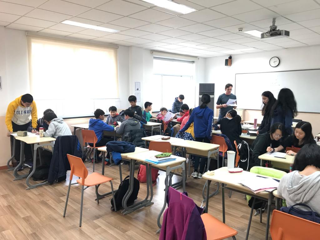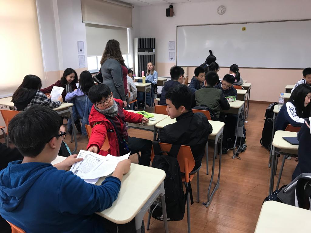 While the spring rains are cool and continuous, the atmosphere is heating up in the 7th grade. A special event was held on Thursday afternoon during CAS. Everyone was divided into 8 groups, occupying the entire class space. The teacher gave each group three papers. On them, there were four tasks as well as data about humans overusing the environment and creating garbage. The message: if we don’t do something right now, we will lose the earth. There were pieces of paper around the room with questions to test how much the classmates knew about recycling and trash, as well as a code to crack. The students finished this small task first, and most of them had some ideas on how to complete the rest. The whole activity went smoothly. Some groups spent a lot of time on the stations, while others went quickly. Time went so fast that no one noticed. When the bell rang, some of the students did not want to leave. This activity is not just leisure time, but a call for the students to care more about the environment.