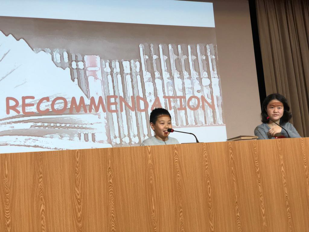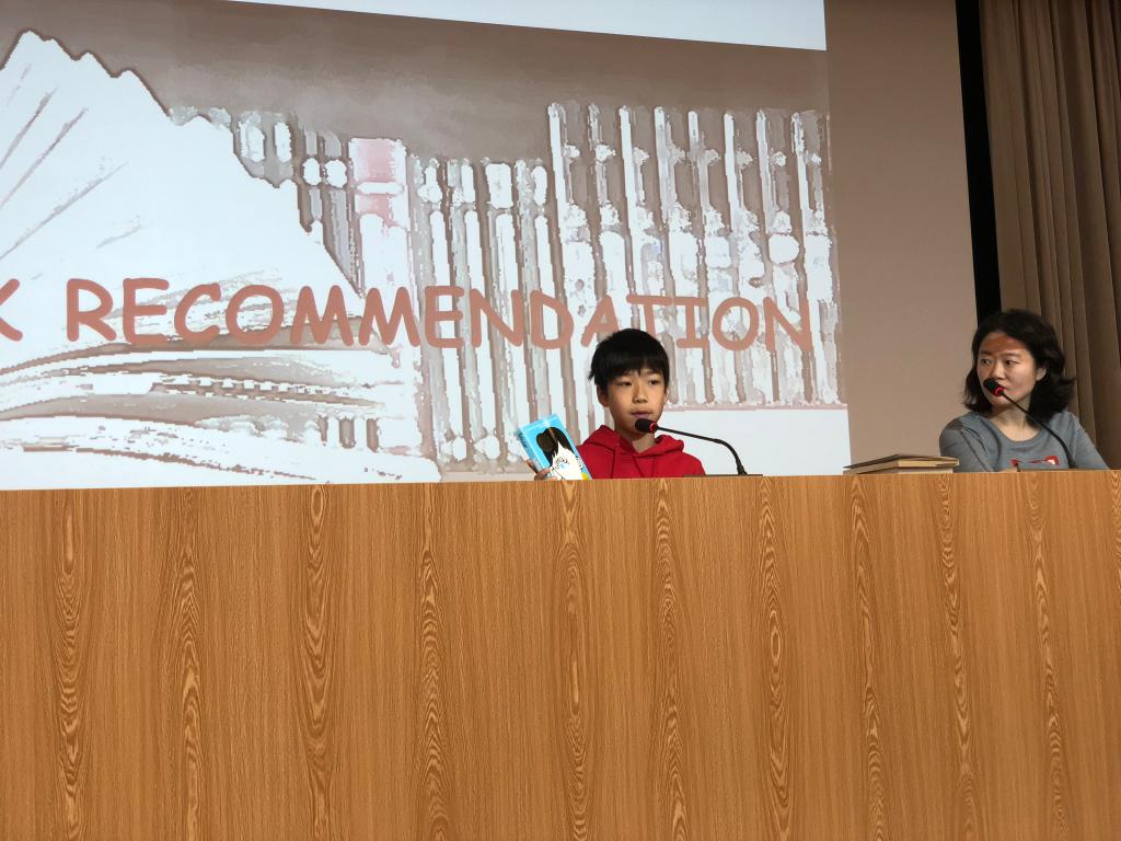 This week is reading week for SHSID Pudong campus. As one of the most important and traditional activities of reading week, thr book recommendation is always popular among both students and teachers. This semester, the book recommendation was held in the afternoon of March 21st. The students from Grade 4 and Grade 5 gathered in the auditorium and held book recommendations during CAS period. Before the book recommendation, Ms. Ren from our library, reaffirmed library regulations. Cyrus and Guoshwan, along with Mr. Joines, from the 4th Grade introduced their favorite books to the students. Books are nutrients for our brain and the book recommendation broadens students’ horizons and helps them build their own library.