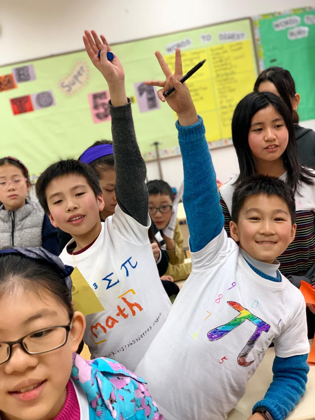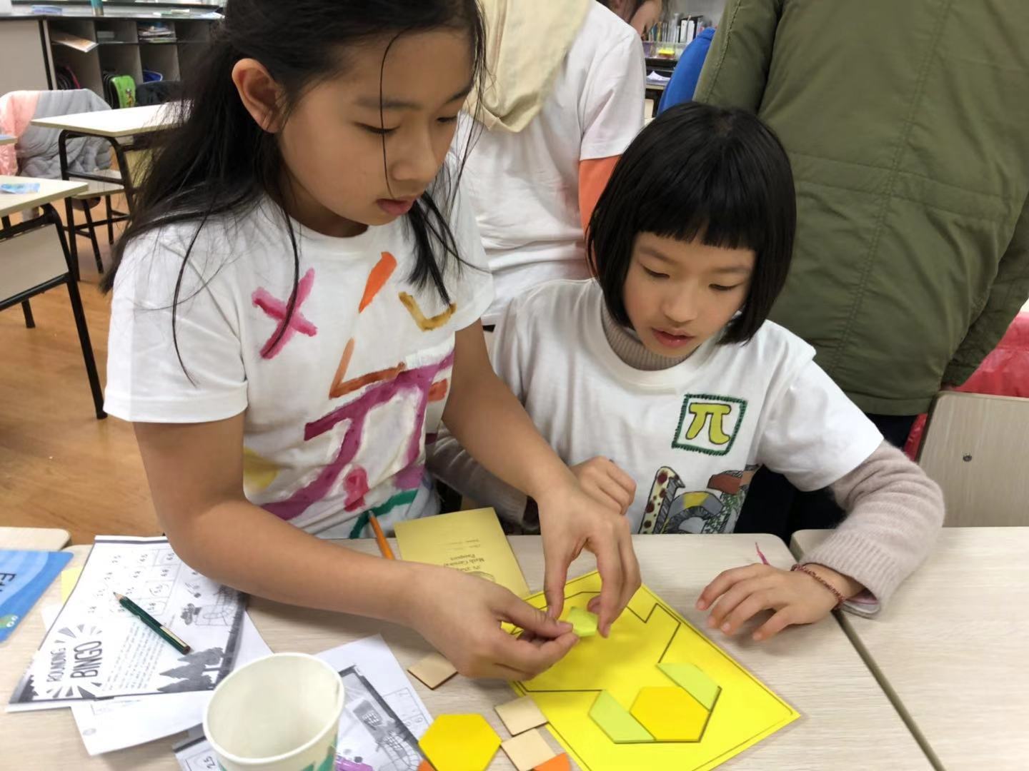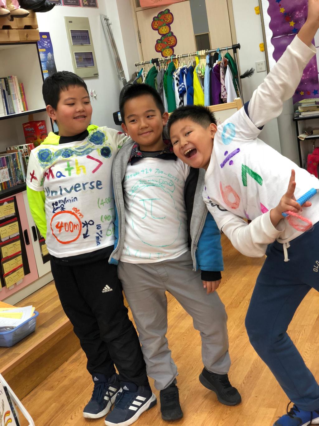 To celebrate math week, grade 4 teachers at SHSID Pudong campus prepared a lot of interesting math activities for the 4th graders. On March 14, Pi Day, the 4th graders delightfully jumped into the classroom to show their artwork to the teachers. The students each wore a hand-made “Math T-shirt”; the teachers were dressed up for math theme, as well. Surrounded by curious students, the teachers explained the mathematical knowledge behind their outfits. After, it was time for the much-anticipated activity: Math Carnival. In the afternoon, the students walked through different homerooms and experienced elaborately designed math games under the guidance of homeroom teachers. At the end of the day, the kids cheerfully tasted delicious pie prepared by the school. Not only did the 4th graders have great fun on Pi day, but they also learned a lot of knowledge related to math and practiced their problem solving and communicating skills. What a meaningful day!