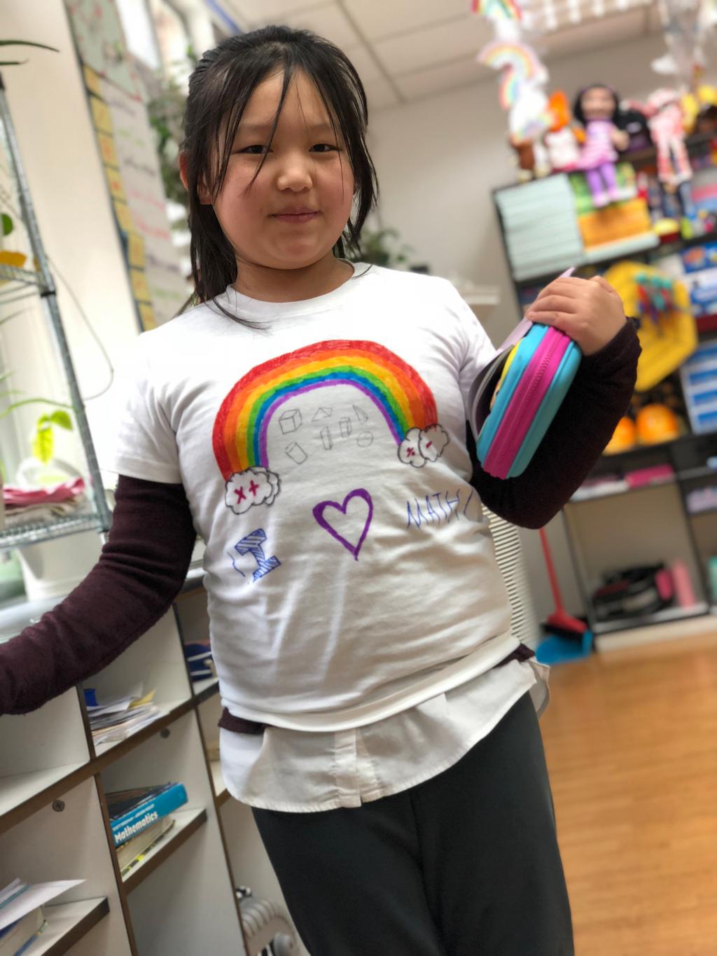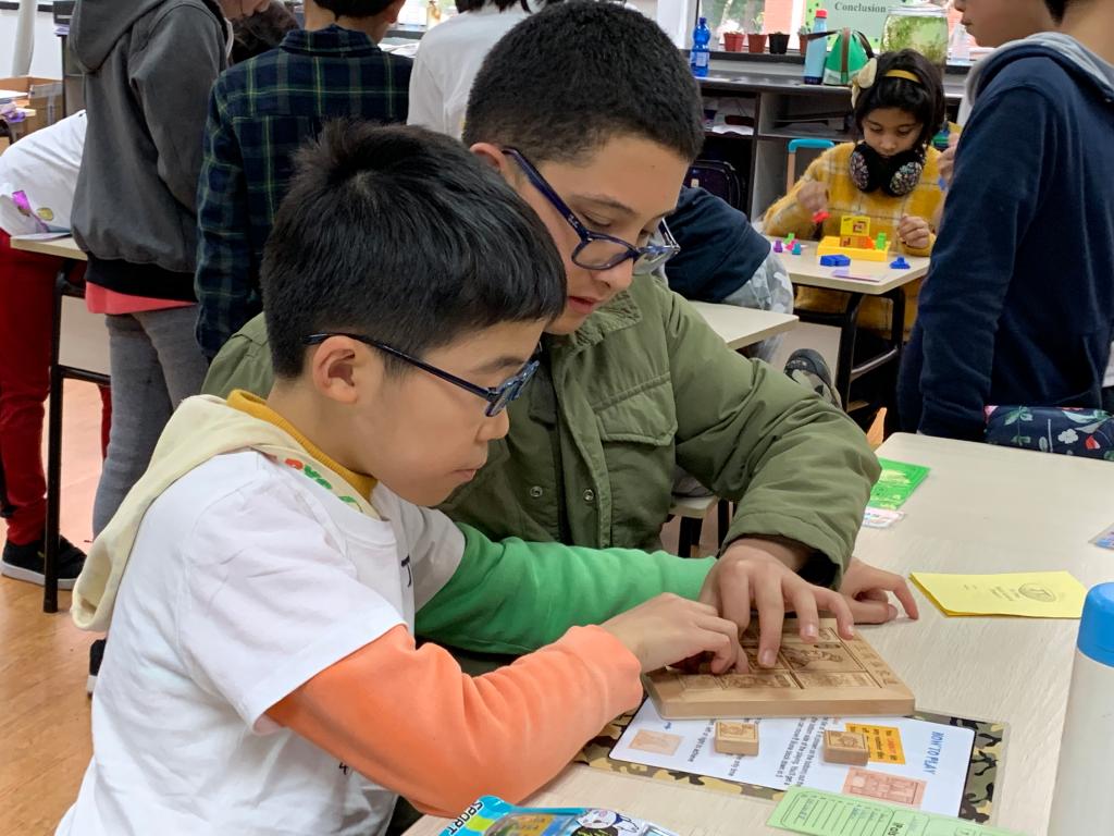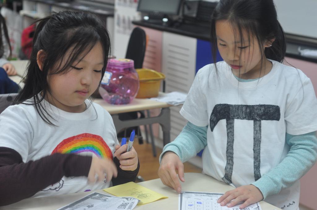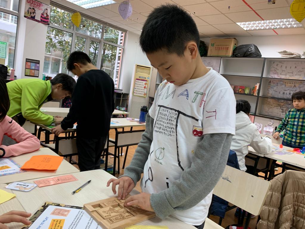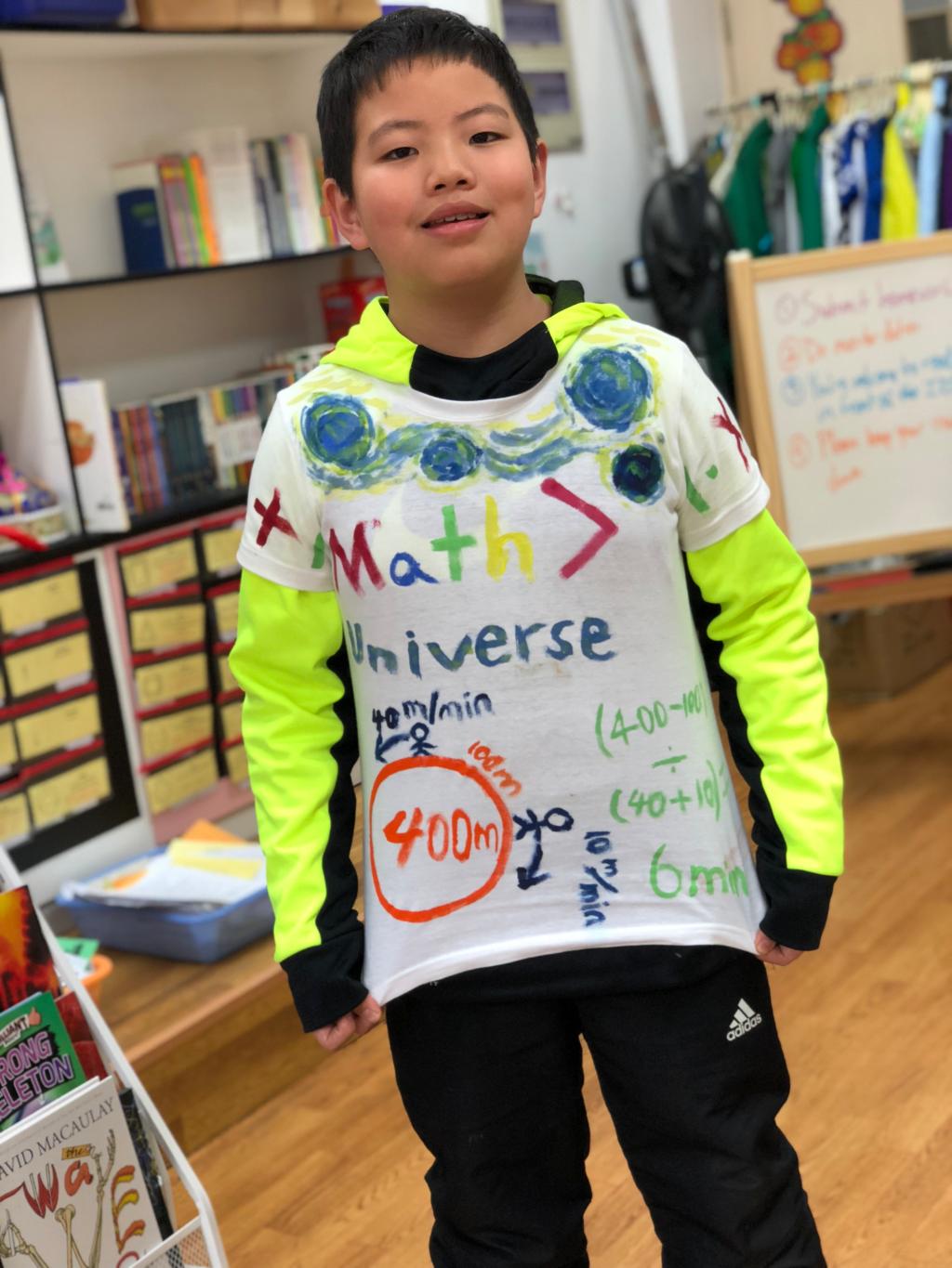 To celebrate math week, grade 4 teachers at SHSID Pudong campus prepared a lot of interesting math activities for the 4th graders. On March 14, Pi Day, the 4th graders delightfully jumped into the classroom to show their artwork to the teachers. The students each wore a hand-made “Math T-shirt”; the teachers were dressed up for math theme, as well. Surrounded by curious students, the teachers explained the mathematical knowledge behind their outfits. After, it was time for the much-anticipated activity: Math Carnival. In the afternoon, the students walked through different homerooms and experienced elaborately designed math games under the guidance of homeroom teachers. At the end of the day, the kids cheerfully tasted delicious pie prepared by the school. Not only did the 4th graders have great fun on Pi day, but they also learned a lot of knowledge related to math and practiced their problem solving and communicating skills. What a meaningful day!