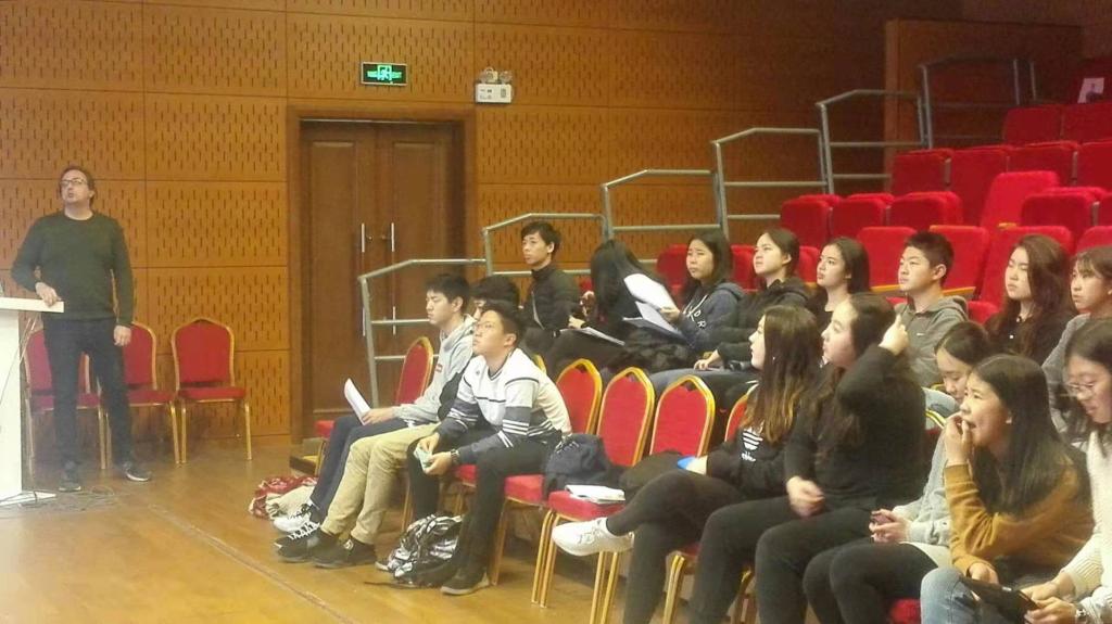 This semester, the High School History & Geography Department and Music & Art Department are collaborating on an interdisciplinary project, a Historical Play on refugees in Shanghai during the1930s-1940s. The project launched at the beginning of the semester under the guidance of Mr. Paul Deichmann. In order to help the students who are involved in the tasks of playwriting and performing better understand the history and culture of Jewish people, IB History teacher and vice head teacher of the History Department, Mr. Christopher Hodachok and Mr. Max Slonim, who teaches IB English and comes from a Jewish family in the United States, brought wonderful lectures to the students in the black box on March 15th, 2019. The students learned a lot from their lectures.