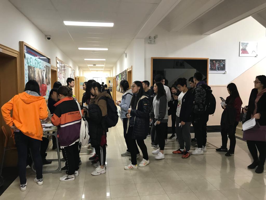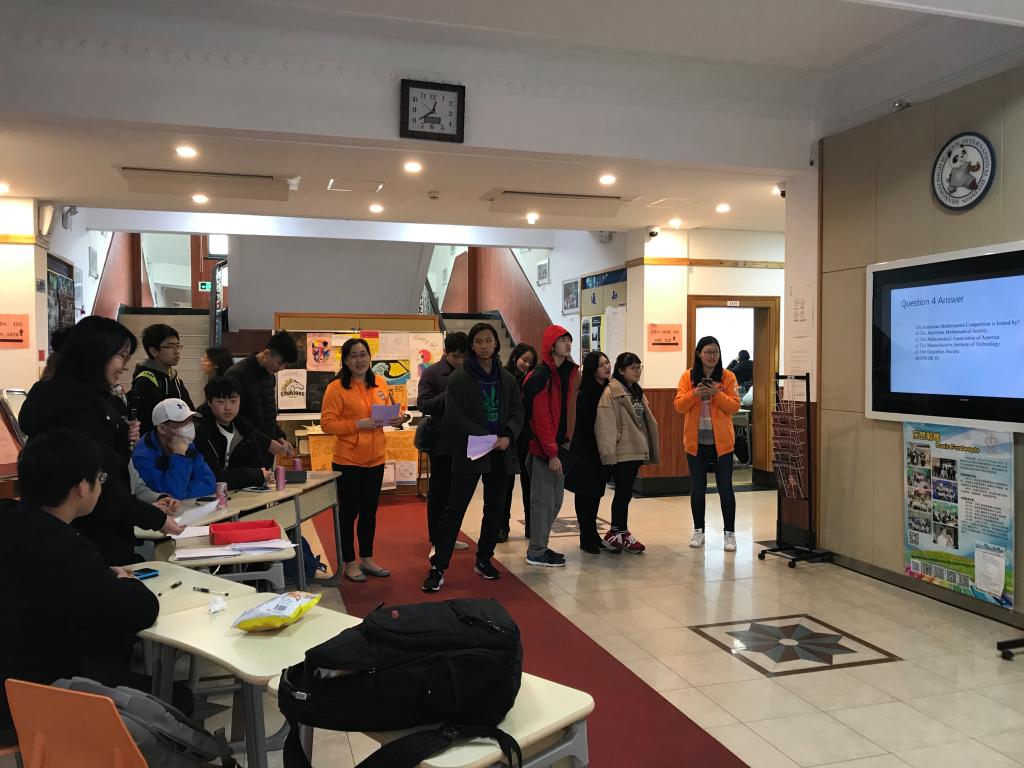 As one walked into the Zhong Xing or Xian Mian building, one could see that their walls were decorated by colorful pieces of paper, on which Math questions were printed. Little numbers were hidden in the corners, waiting for the students to discover them. Early birds had already formed groups to discuss how to solve the problems. In order to get 3.14, some used calculators and tested different combinations and arithmetic operations.