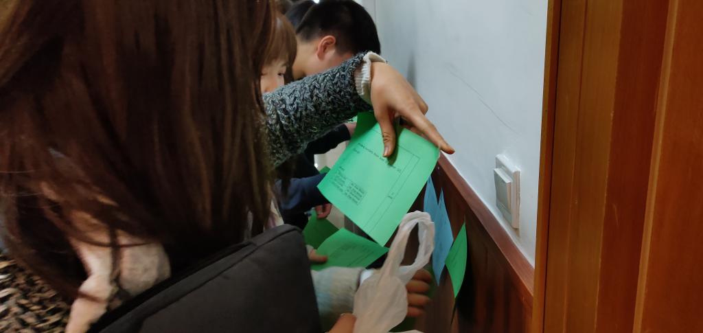 In the afternoon, all the questions that had been posted on the wall, as well as the numbers hidden in the building, were torn off by the students. Everyone continued to discuss the Math problems joyfully.