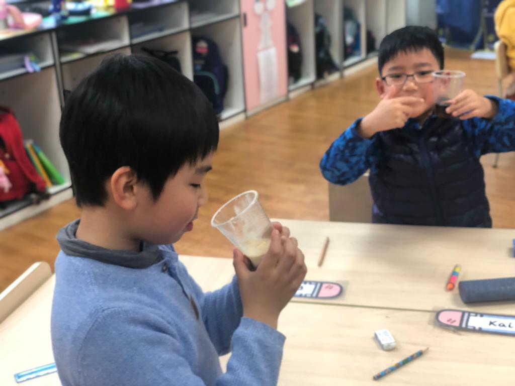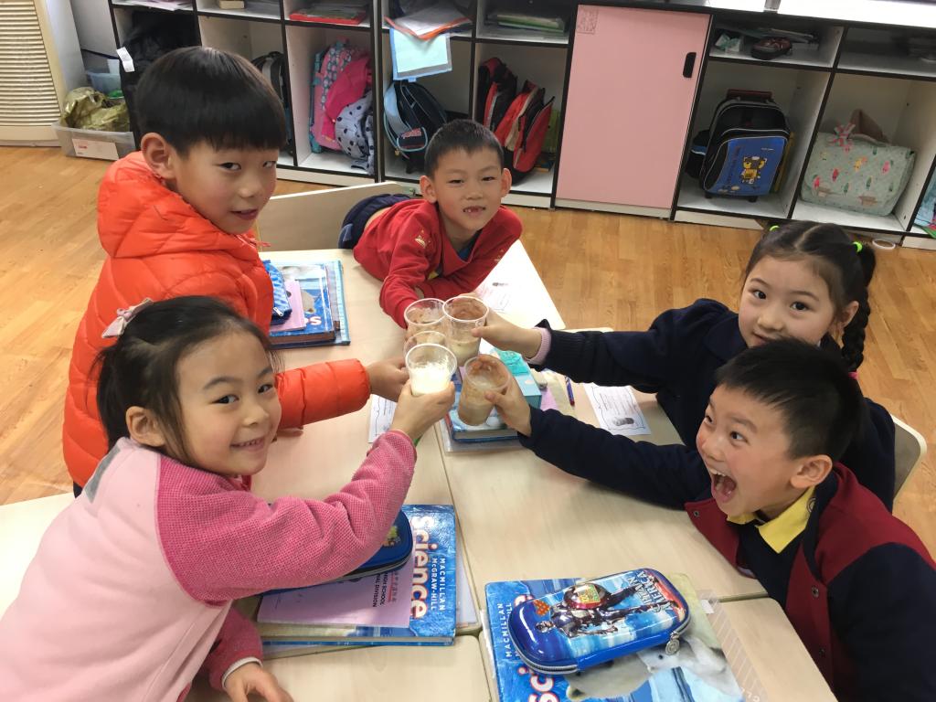 How could science class be yummy? On March 13th, 2019, grade one students at SHSID Pudong campus enjoyed their science lesson by filling their stomachs happily. In order to enhance their understanding of solid, gas, and liquid states, students were given a cup of coke to observe the form of both liquid and gas. Later, students were additionally given a scoop of ice-cream to observe all of the forms of liquid, gas and solid. Students were so excited that they couldn’t wait to eat them. From this activity, students learnt scientific facts through real-world interaction.