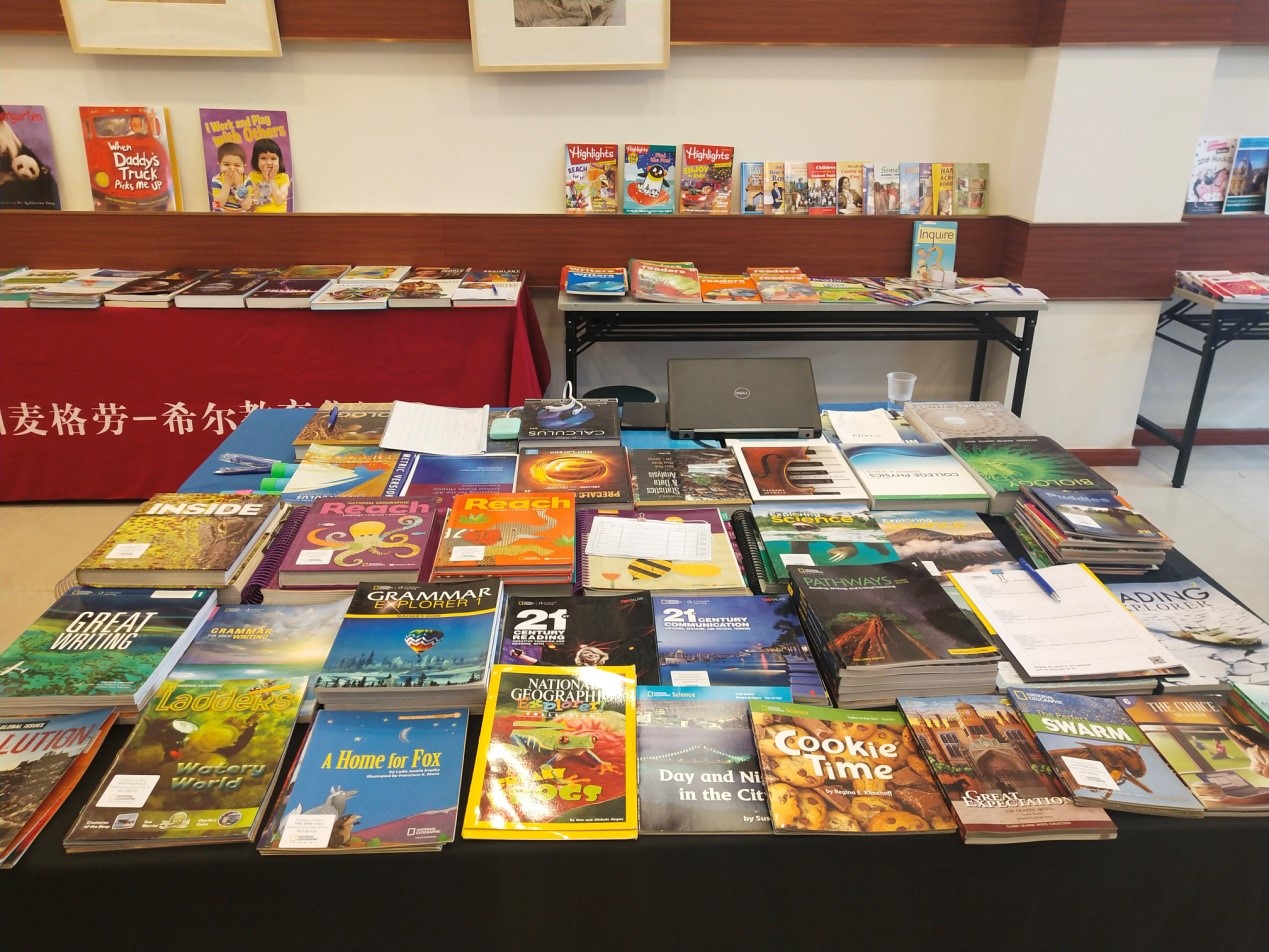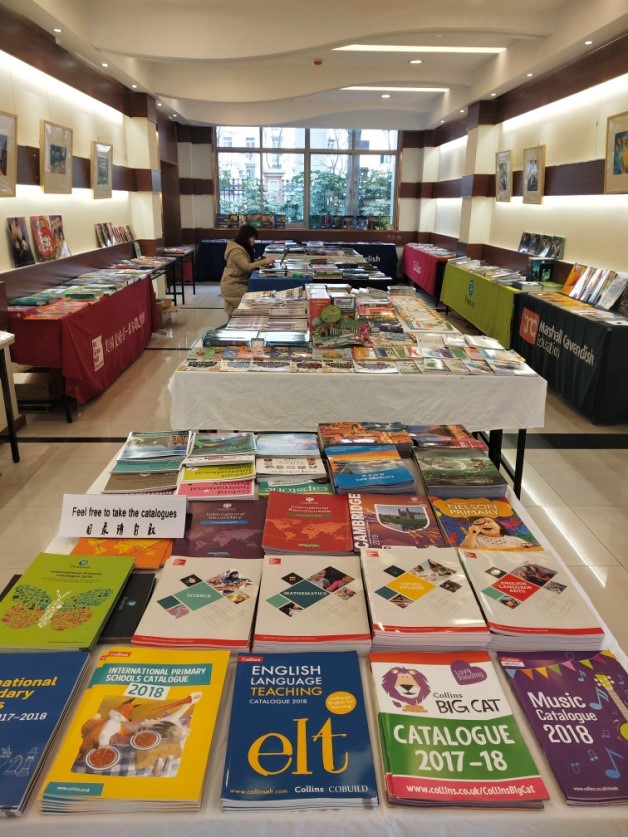 The annual SHSID Book Fair started on a rainy spring day. This year we invited more than ten foreign-funded publishing houses and bookstores to participate in the exhibition, including Pearson, McGraw-Hill, Cengage, Holt Mifflin, Oxford, Cambridge, Hodder, Harper Collins, Marshall Cavendish, SAP and the Oriental Bookstore. The sample books are from the United Kingdom, the United States, Singapore, Hong Kong and other places. This book fair is one of the largest and most diverse SHSID has had in years.