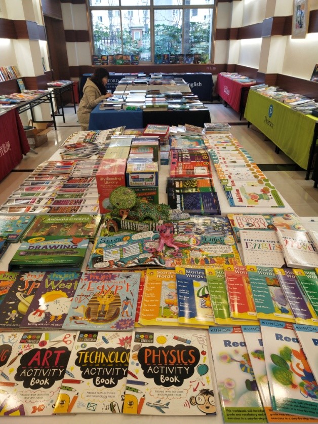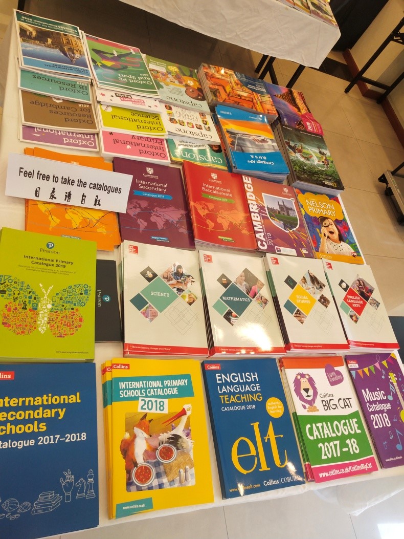 The publishing house has brought textbooks and supplementary materials, ranging from K-12 and higher education, which are suitable for mainstream international courses, i.e., IB, AP, CIE A-Level, AQA A-level, IGCSE, O-Level and other US based curriculums. The fair only lasts for two weeks, teachers both from the local division and international division are welcome to visit it.