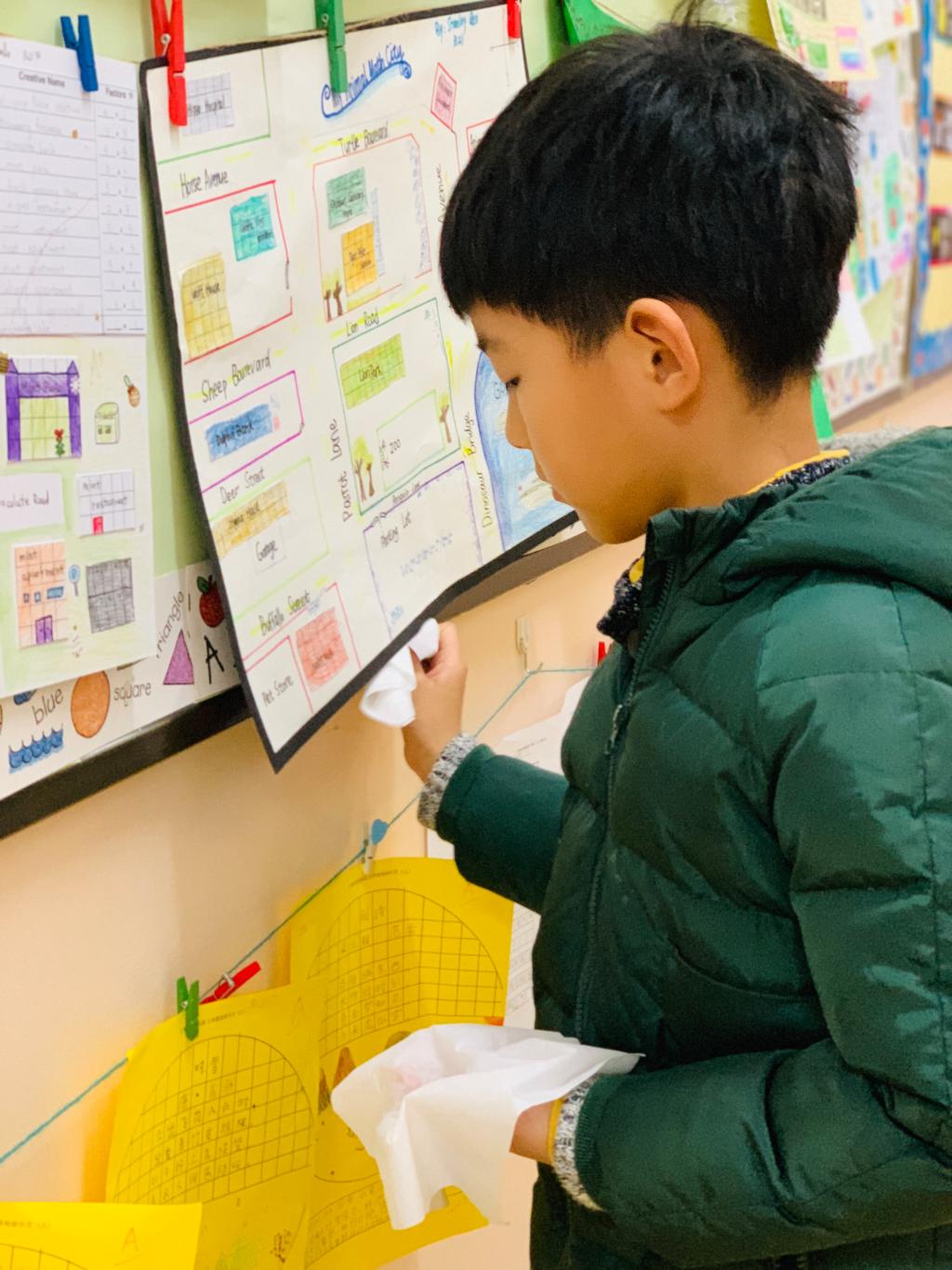 In grade three S+ English, the students collaborated to complete different volunteer activities. This lesson was based upon our biweekly in-class anchor text. The message of this text is that ordinary people can work together to improve the community around them. After reading, the students researched how fellow kids are making a difference. They then brainstormed problems within their own communities and thought of ways they could make a positive impact. The following English class, students were given a choice between six different volunteer activities to participate in around our school campus. These activities had a range of goals, from keeping our playground clean to improving safety in the school hallway. After completing their volunteering, students formed small groups and prepared a short presentation to teach their classmates about the volunteer work they did, problems they addressed, and what they learned from this activity. The presentation allowed students to reflect on what they had just accomplished. Students made personal connections to our anchor text and gained a deeper understanding and appreciation of the hard work our school’s staff does to keep it a clean, loving, and safe environment. This lesson allowed students to embody one of our school’s core values: building responsible global citizens. In this lesson, our students built social awareness and self-development through teamwork, compassion, communication, and perseverance.