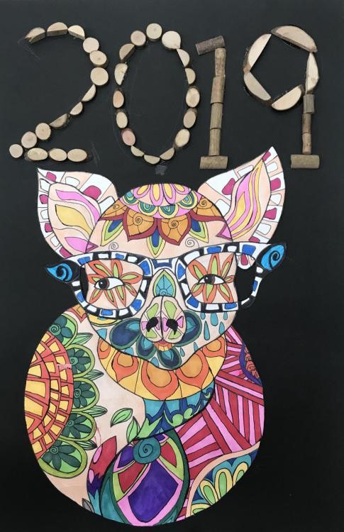 “Colorful 2019”, artwork by student Huang Liang Yi (11 years old, SHSID), won the Golden Pig award at the tenth Shanghai Children's Zodiac Painting Exhibition in 2019.
