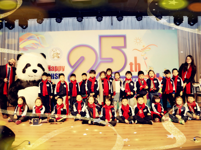 At the beginning of the ceremony, students watched attentively as the principal, parent representatives, and renowned guests delivered speeches. Later, Ms. Liu, the director of Pudong campus, picked out parent wishes in the lucky draw. Students also celebrated the winners of the art competition and writing competition. They even ate birthday cake and special noodles. Grade one students are happy to be a part of the big SHSID family and are determined to try their best in the following years.