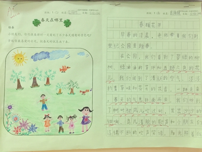 After almost a whole month’s careful preparation, all the Grade 1 students handed in their creative Chinese Poster, Finding Spring, on Monday, May 13th. Each student had drawn an essay which described his favorite part of spring.