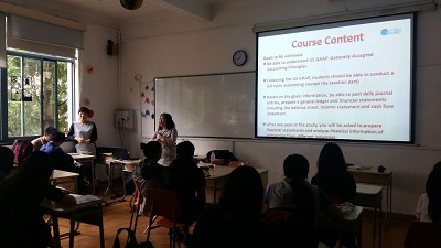 On Friday, May 27th, 11th grade students who intend to take accounting class in 12thgrade gathered together in 209 Xianmian Building to listen to Ms. Xia's lecture on the accounting course. She insisted that students needed to have adequate Mathematics calculation skills and "great analytical" skills to thrive in accounting class. Otherwise, she warned students against taking this class next year. .