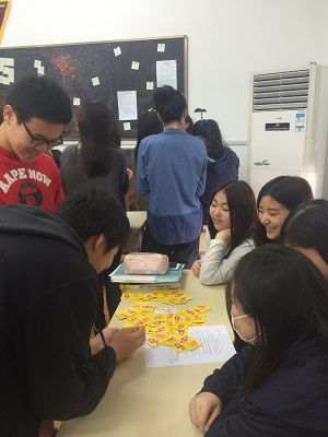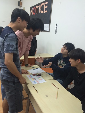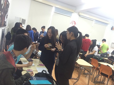 On May 24th, the two grade 11 H level Math classes made their appearance in Rm 308 as cute “vendors”! This period was saved for the Math Project finale: the Probability Game Fair. The fair was divided in two 20-minite sessions with seven teams respectively. Each team designed their special games and set up their game booths around the classroom with cards, coins, tokens and props they made on their own, going all out to attract players. The games were delicately designed and each step contained the students’ profound thinking in probability. Blackjack, coin flipping, rock paper scissors… Various classic games are embedded in their design. Of course, fun is not the only thing in the fair. The observers in each team were also carefully recording the frequencies of each step, in order to compare it with theoretical probability they derived by reasoning in their final report. All the way through this project, students’ interest in probability application has been boosted and their understanding enhanced as well.