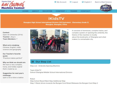 IKidsTV, the team of Grade 5, won the 1st place of the Rube Goldberg Machine Contest all over the world. In this international competition, the machine they designed consisted of dominoes, complex tracks, and a complex system that could open an umbrella. The theme of the machine was mostly about the landmarks of Shanghai and what makes it a remarkable city. At the very beginning, iKids group members worked well; however, when meeting some difficulties, they tried to negotiate and help each other. Students were so delighted after winning the contest, but the most important lesson that they learned is the importance of teamwork. Congratulations!