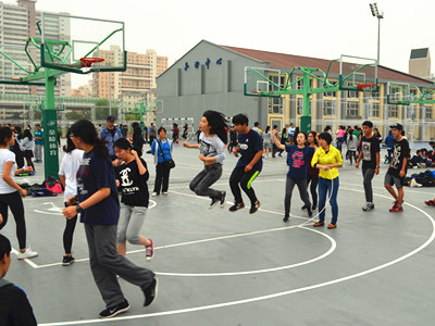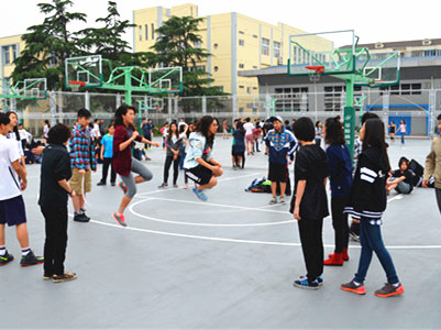 On Monday May 9th, the 9thand 10thgraders had the rope skipping competition during the PE class in the afternoon. This competition was divided into two games: the long rope skipping and the double skipping. Each class, forming a team of twelve, was trying and doing their best to accomplish as many jumps as they can in the long rope game. The spectators were filled with excitement, cheering for their teams. After the class long rope competition was the short rope competition. However, a little different from what we usually consider, the short rope jumping included two people in a rope at the same time. All classes did great and put effort into this event.