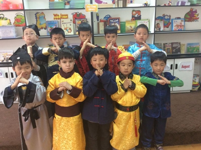 On the last day of Chinese Cultural Week, children wore traditional Chinese costumes to school.
