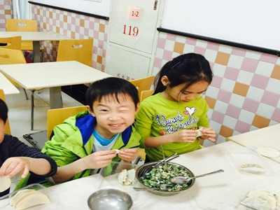 Children came to the lunch room and made dumplings. Although it was the first time for most of them to do it, they did it quite well. Late, children took their dumplings home and tasted the dumplings made by themselves. They really love it!
