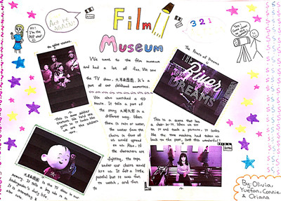 Last Thursday, November 26th, the 7th graders visitedShanghaiFilmMuseum. The glass displays, which showed many classical scenes of movies, the interactional games, and the amazing 4D movie, all gave the students unforgettable memories. Please enjoy the following posters which have captured these cherished moments: