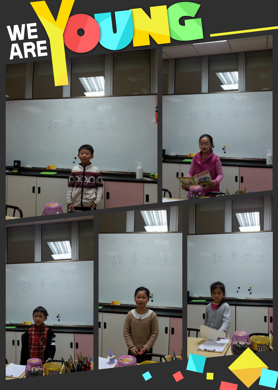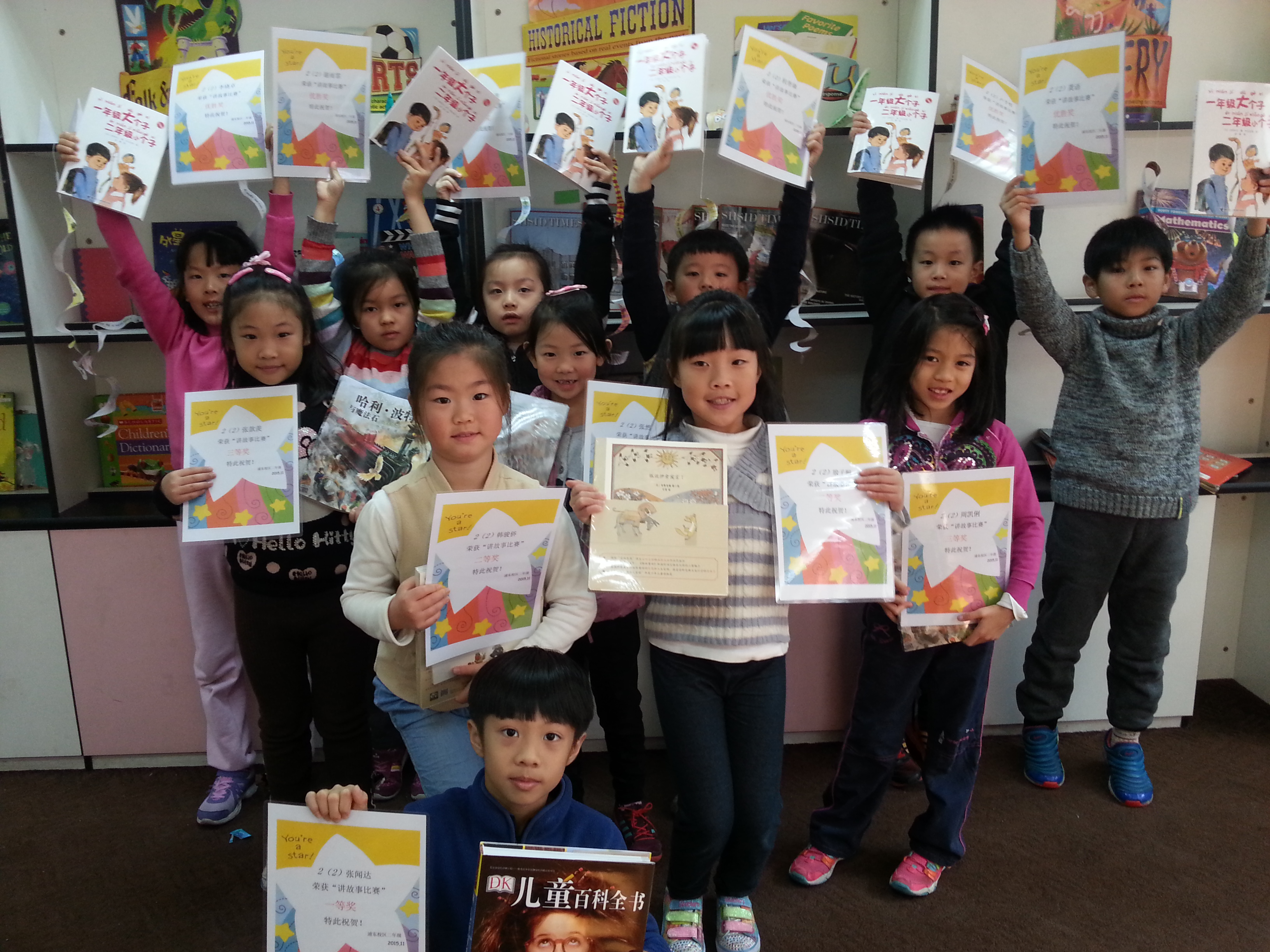 Week 13, there was a Chinese story telling show held in second grade. In total, we have 12 kids that stand out to perform in class. These performers prepared stage properties by themselves and all of them had an excellent performance. Our listeners also showed great attention and enjoyed this show a lot. Congratulations!