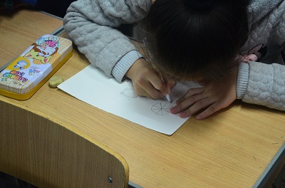Jasmine Gu and Maggie Huang from the Art Club, along with Janet Peng from Tuck In, volunteered this teaching trip. While it was only a couple of hours, it brought us so much satisfaction and sweet memories.. When we first entered into the room, the students were a bit nervous and distant, probably due to a first time meeting. However, once we asked them to draw circles on the paper, the whole classroom suddenly became warm and joyful.. Every student was energized. They held their pencils and drew all kinds of circles on white paper, albeit childish, with many designs added to the circles. We "patrolled" the entire class, asked their creative ideas with circles one by one, and tried to teach some basic drawing skills as much as possible. We hope our interactions will inspire their interest and passion into painting.