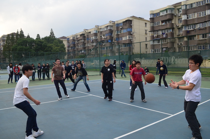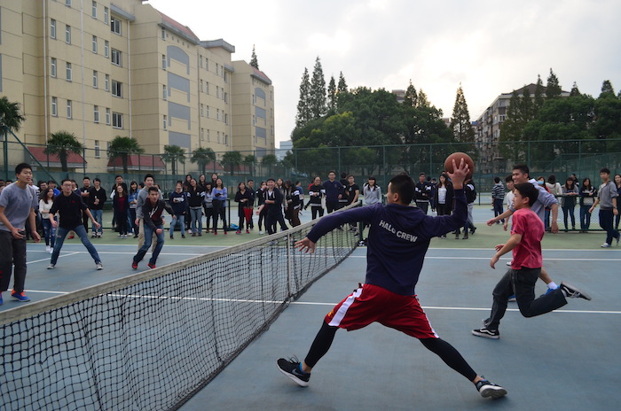 On Wednesday November 11th the Xian Mian building held a Dodge Ball Competition. In the morning, homeroom teachers counted 20 volunteer competitors for that afternoon’s game. Each team is made up of two classes, grouped together randomly. During the CAS class that afternoon, seniors traveled to the outdoors tennis court. Students lined up in a row to be counted off, when both teams had no more than 20 players, the first throw is fired.