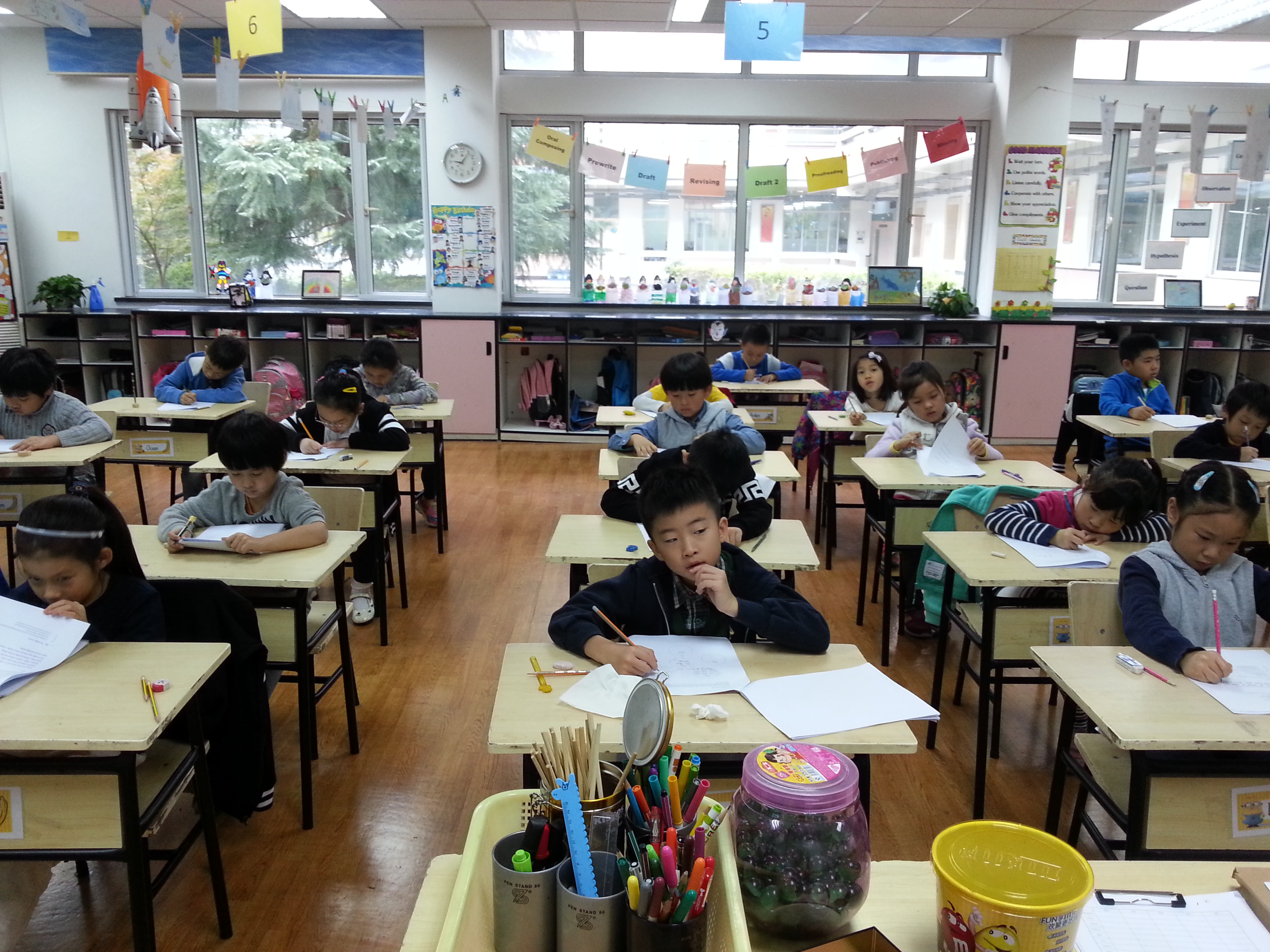 Grade 2 kids started their Midterm in week 10. All the kids studied hard for the 3-day examinations, and they finished English, Science, ESL, Math and Chinese tests in turn. They kept checking test paper when they were done. After the last test, kids were so relieved that they can not wait to play!