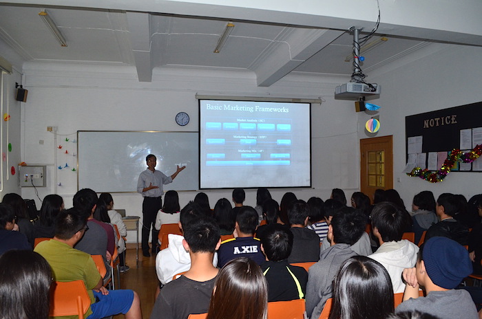 In Marketing, the lecturer who started a dentist equipment company by himself gave the students a brief overview of how marketing divides and functions. Instead of pure commercials as the students previously thought, marketing does subdivide into numerous complex ways of operation. The lecturer also gave the students a few short commercial videos along with some case analysis, which really gave a lively sense on what marketing really is.
