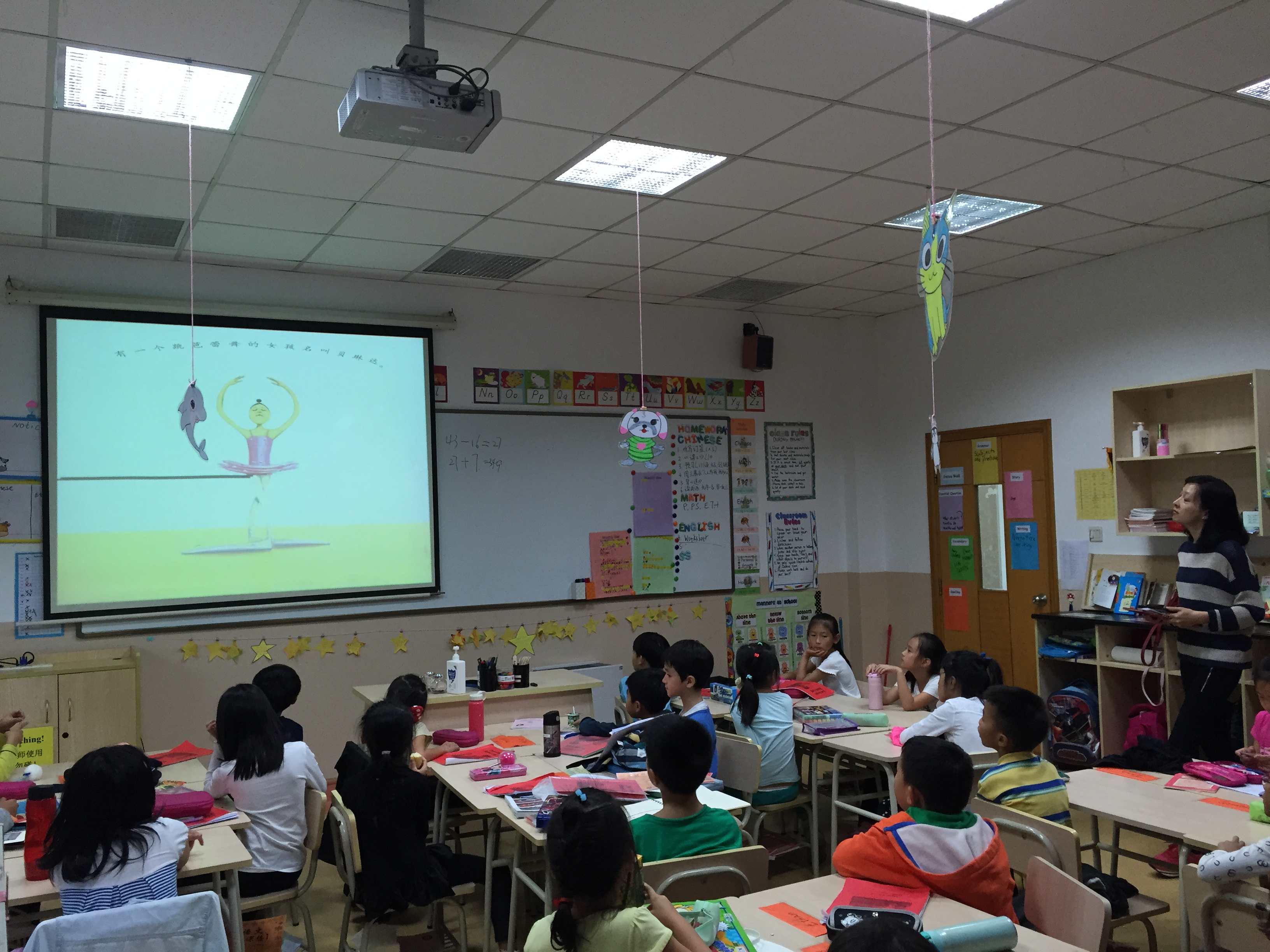 On October 8th, story moms brought the second graders another interesting story, “Belinda with Big Feet.” In this story, Belinda was a ballerina with a passion for dancing. But she has a big problem—two big feet. However, she never gave up dancing. On one fortuitous occasion, she was appreciated by people from a famous theatre. Finally, she realized her dream of dancing. The students gained happiness from the story and were deeply moved by the girl because of her persistence. Also, the kids learned about the importance of reading.