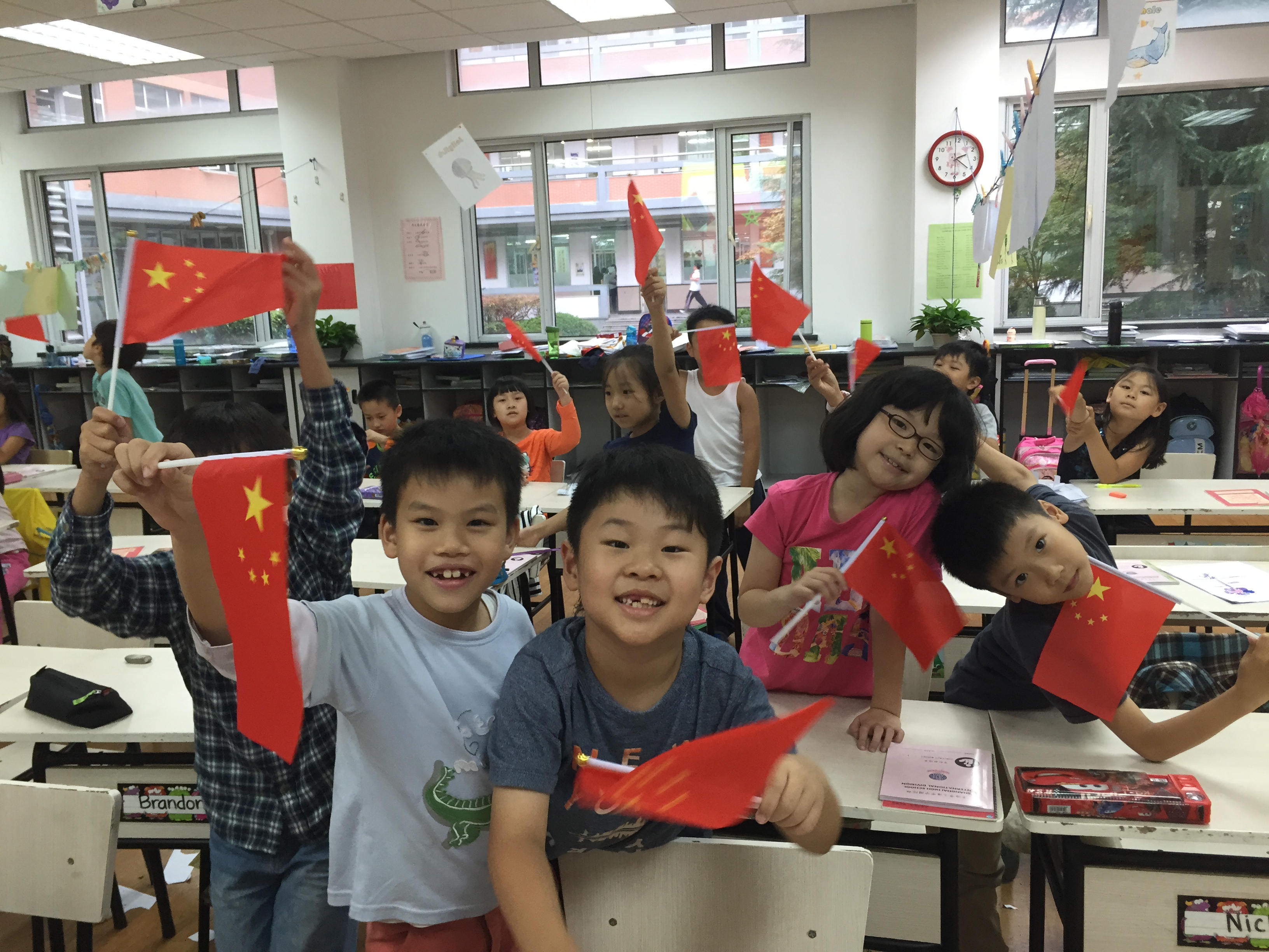 Grade 2 students had an interesting national flags quiz in personal growth. The teachers prepared PPTs about national flags around the world, and the students guessed which flag came from which country. Finally, the students not only got Chinese national flags as presents but also learned related information.